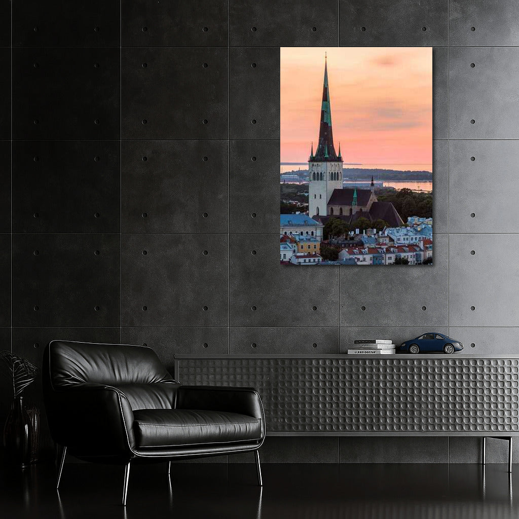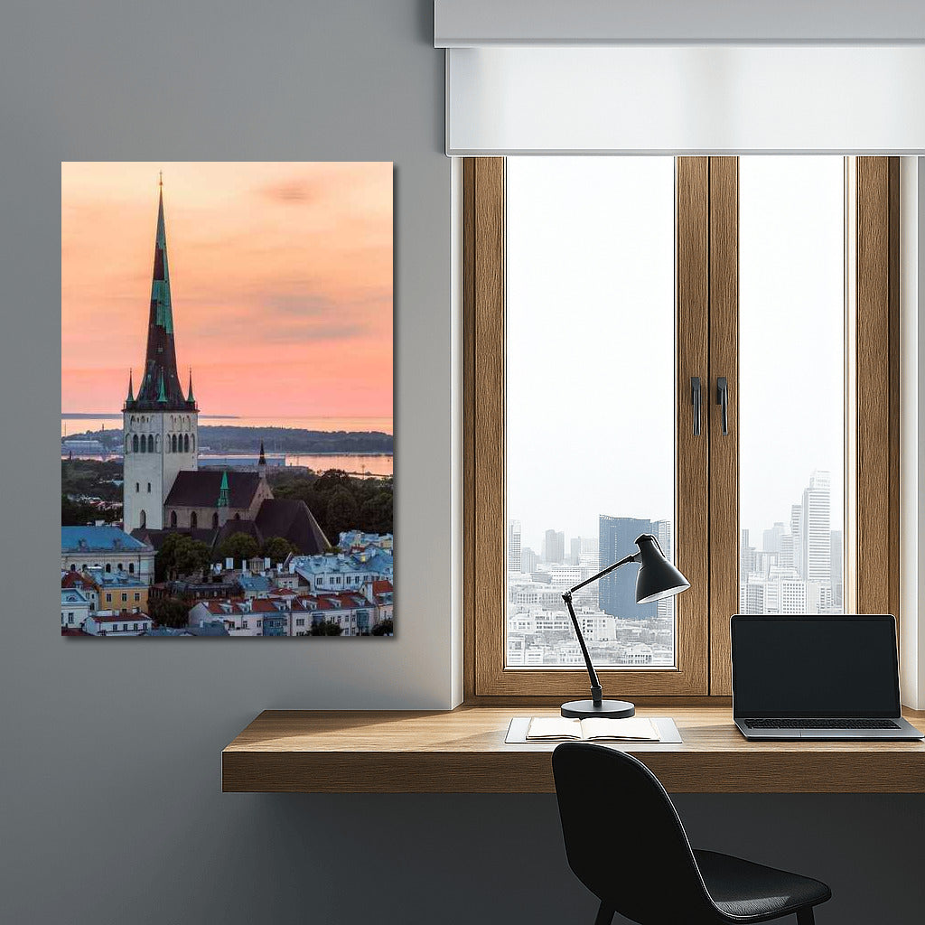 Experience the magic of Lithuania with this poster: sunset over ancient architecture will inspire travel and dreams. See more from the collection: Country Art