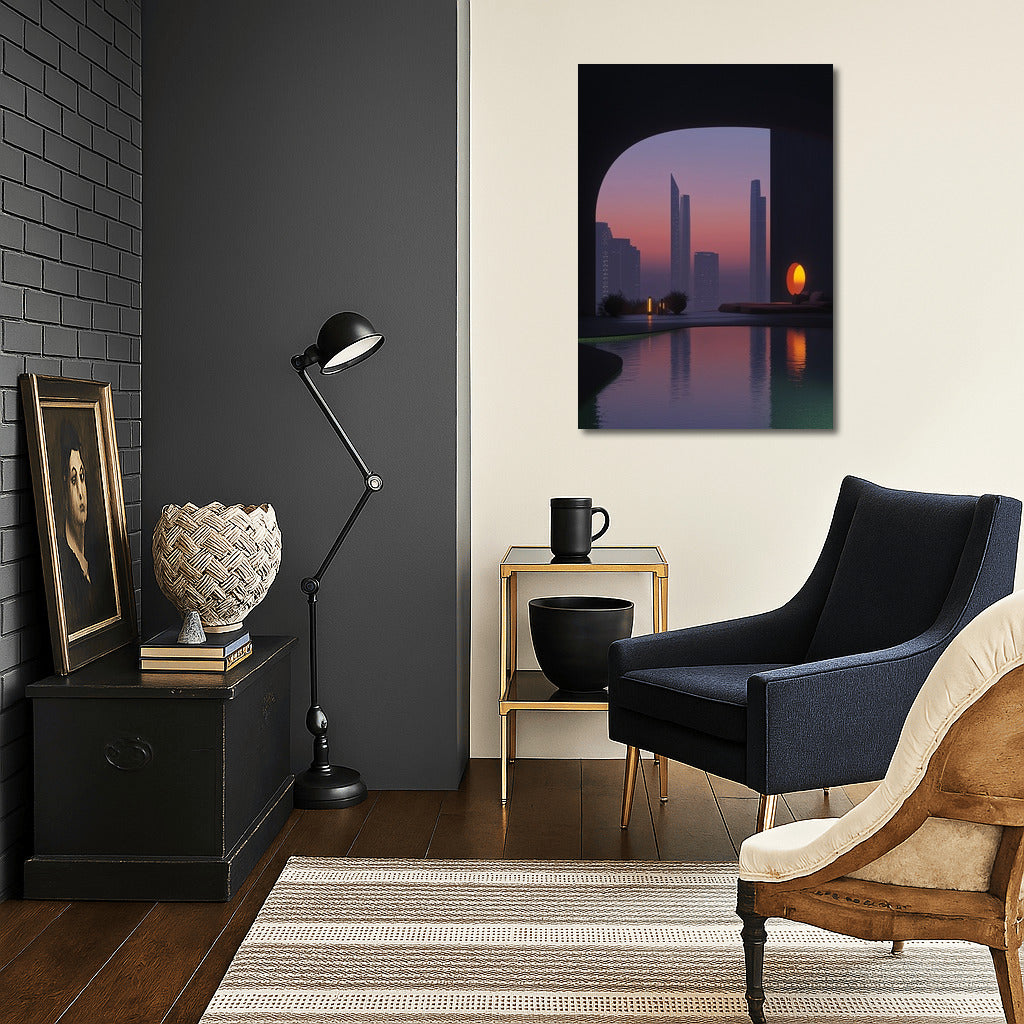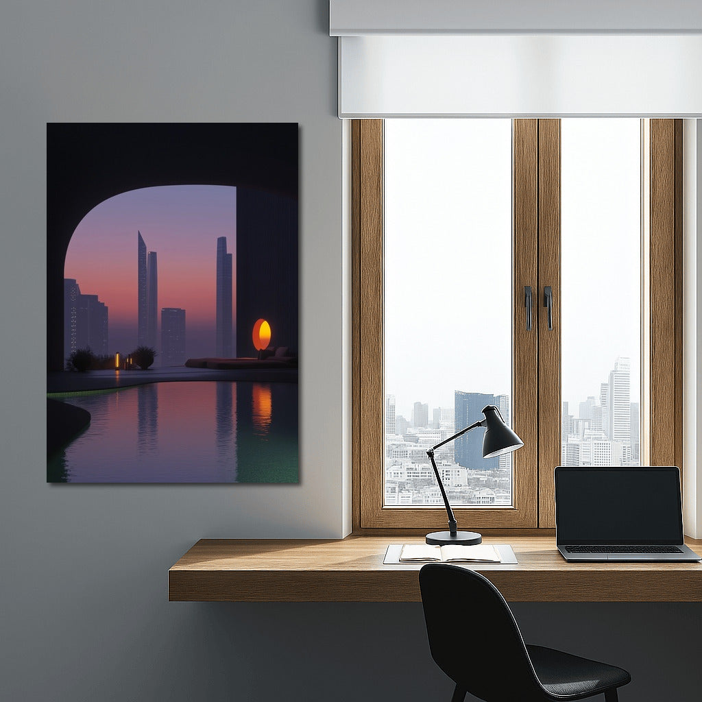 Modern wall art: cityscape in sunset colors. Immerse yourself in an atmosphere of calm and style with this unique poster. See more from the collection: Mixed Wall Art