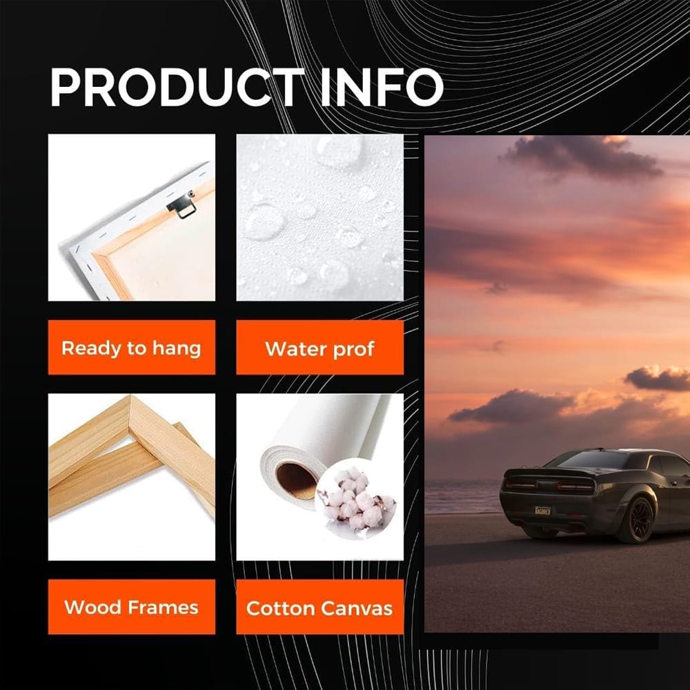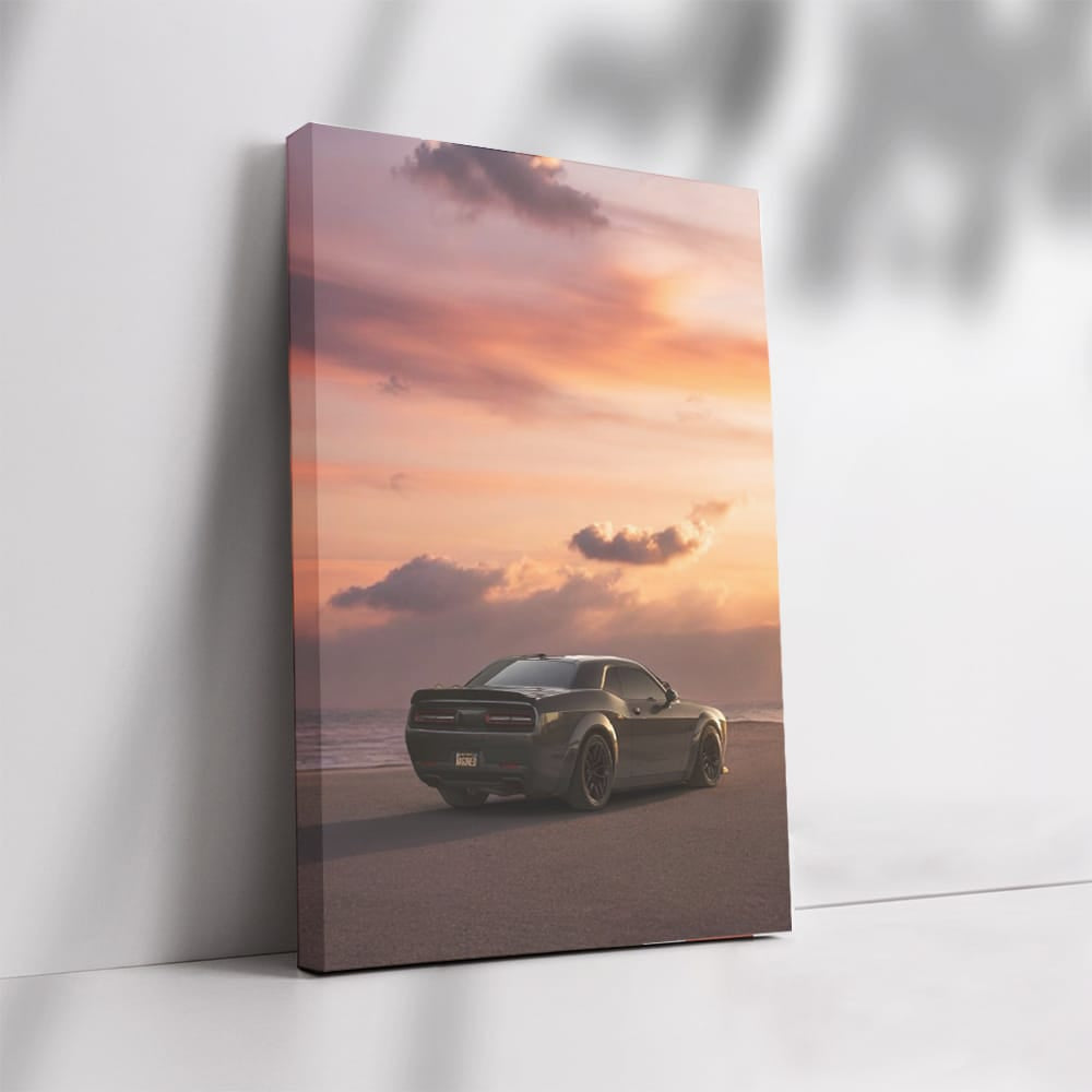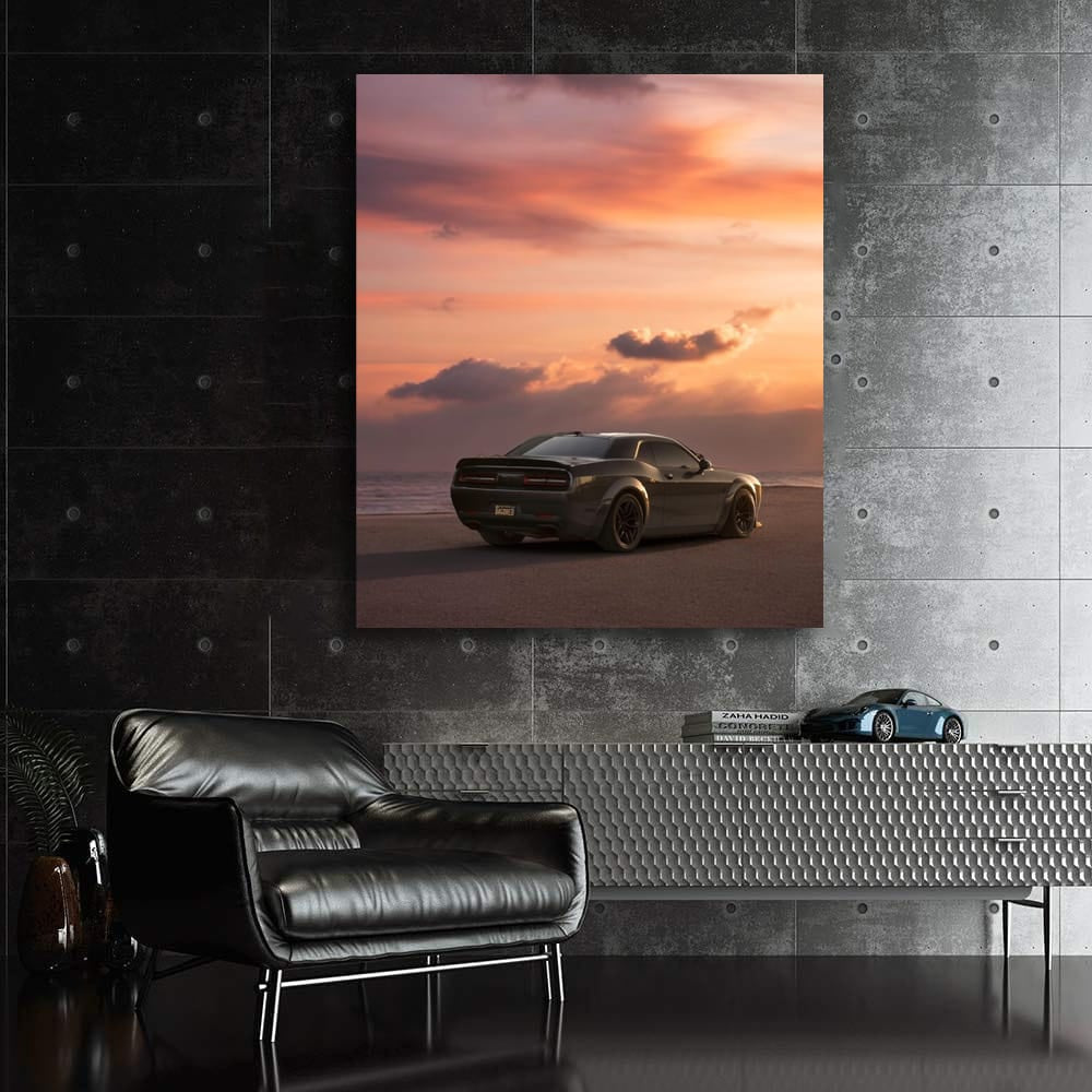 Hey, bro! Check out this painting. Here's a Dodge at sunset - like a beast in ambush. Wall art that screams power and speed. You see, this is not just a poster, this is a lifestyle for real car lovers! See more from the collection: Dodge Art