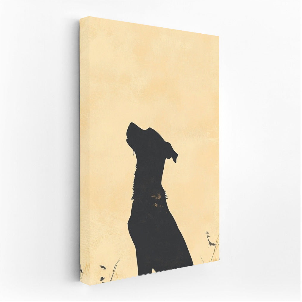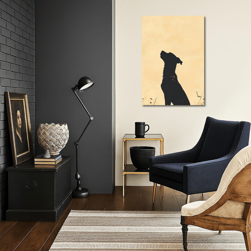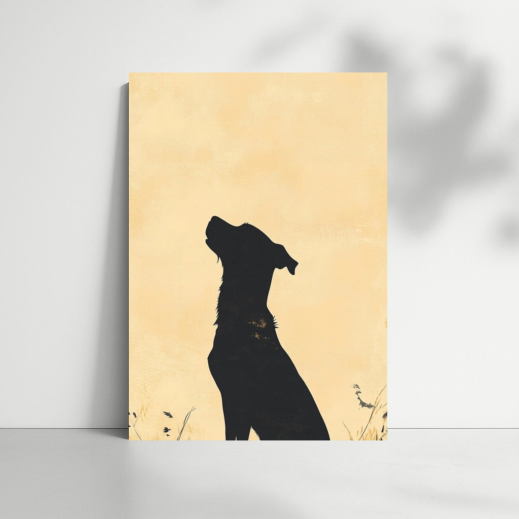 Silhouette painting of a dog against a sunset. This wall art will create an atmosphere of coziness and peace in your home. See more from the collection: Mixed Wall Art
