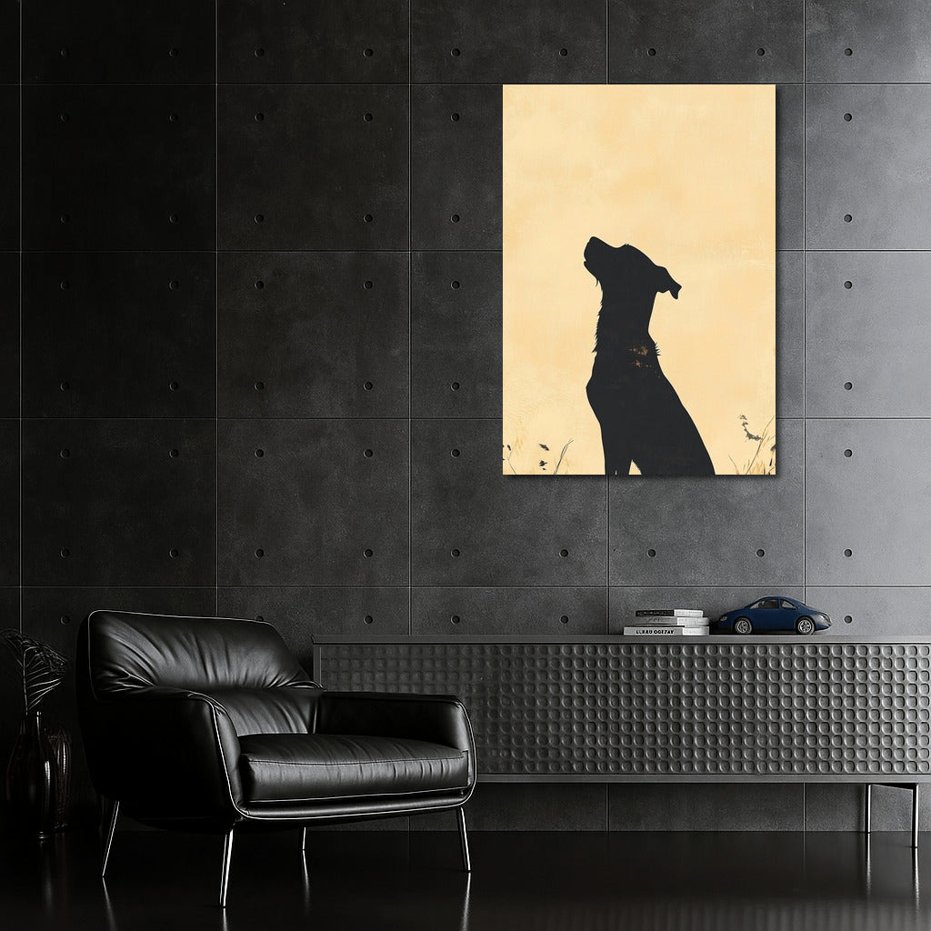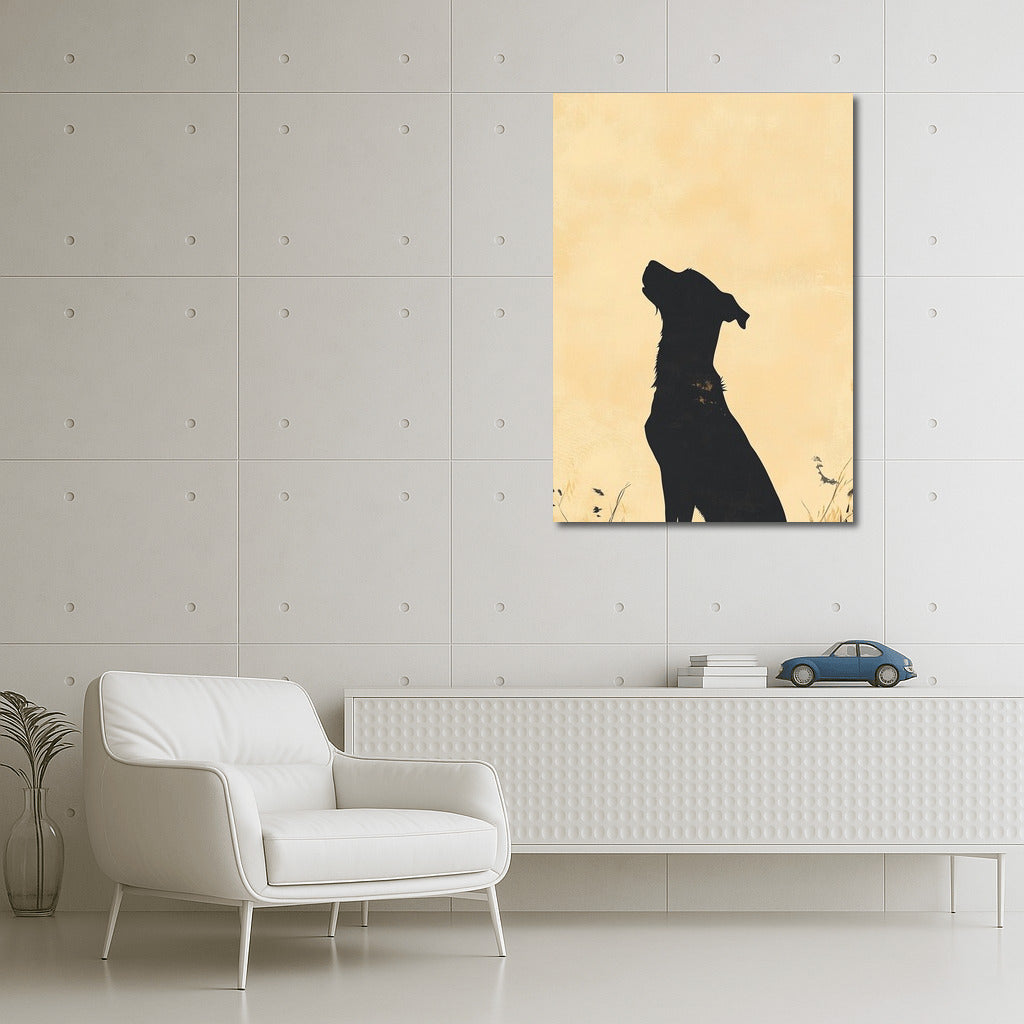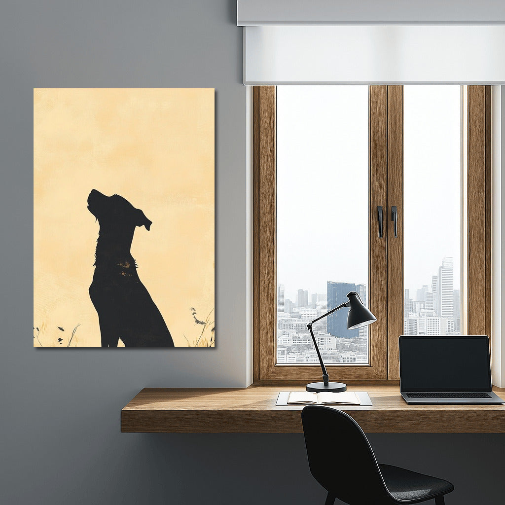 Silhouette painting of a dog against a sunset. This wall art will create an atmosphere of coziness and peace in your home. See more from the collection: Mixed Wall Art
