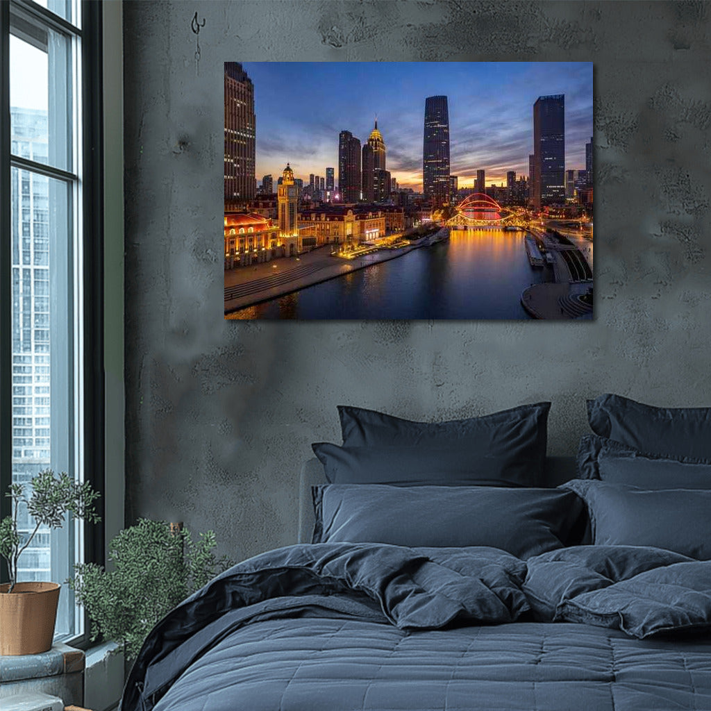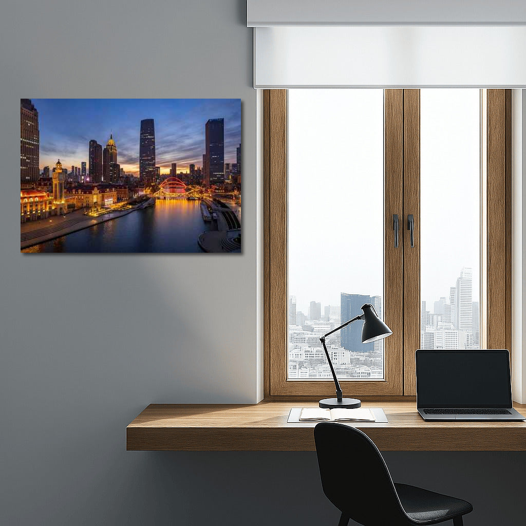 Immerse yourself in the glow of Shanghai with a stunning city poster where skyscrapers meet the sunset to create magical wall art. See more from the collection: Cityscapes & Skylines Art
