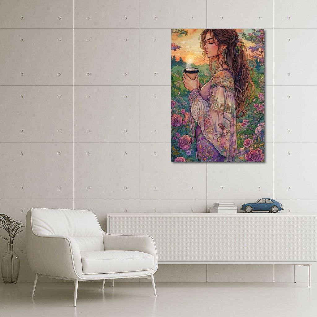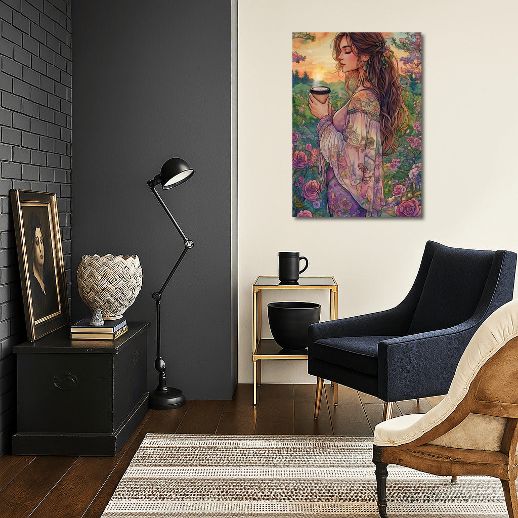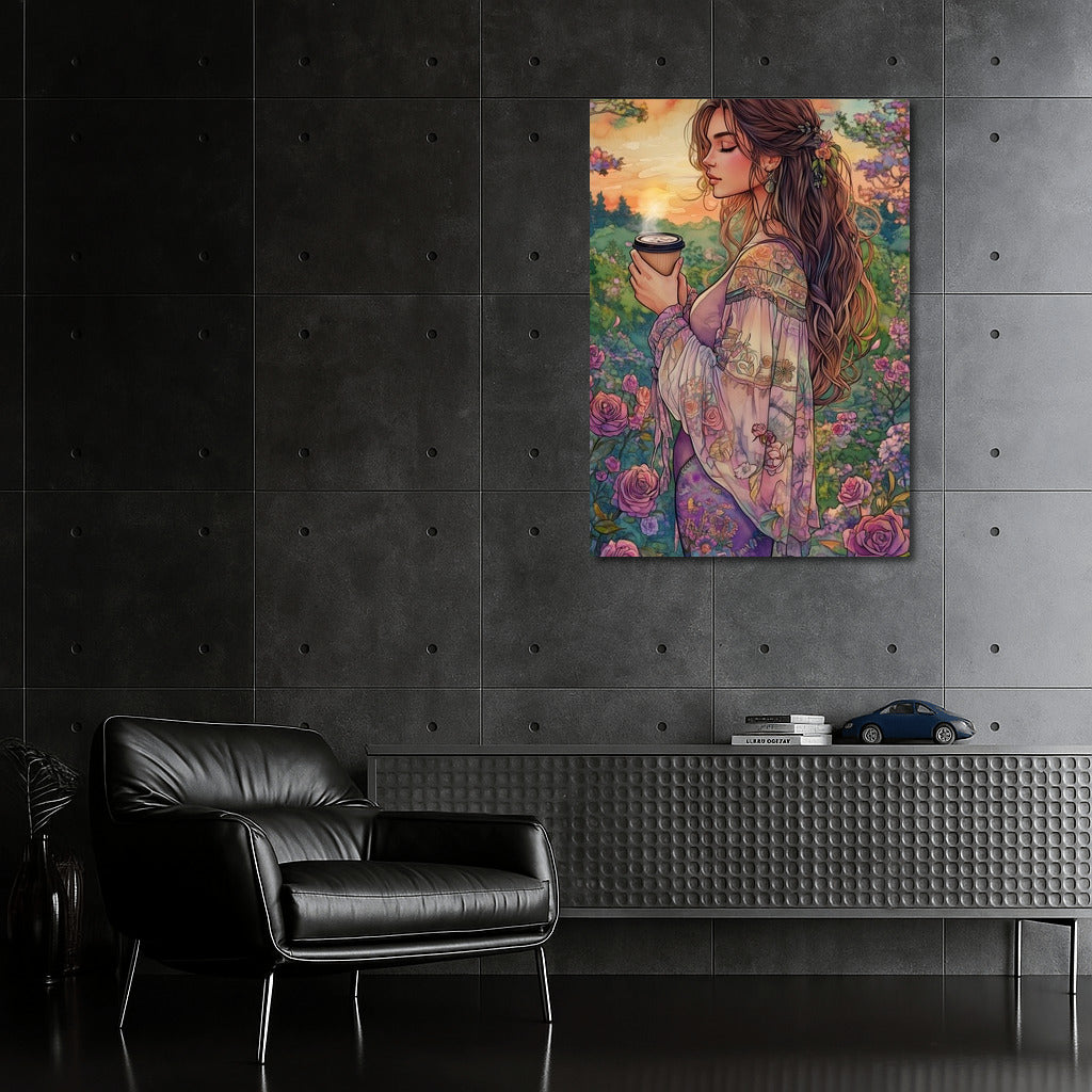 Dive into a dreamy atmosphere with this art painting. Magical sunset and flowers create a unique wall art. See more from the collection: Mixed Wall Art