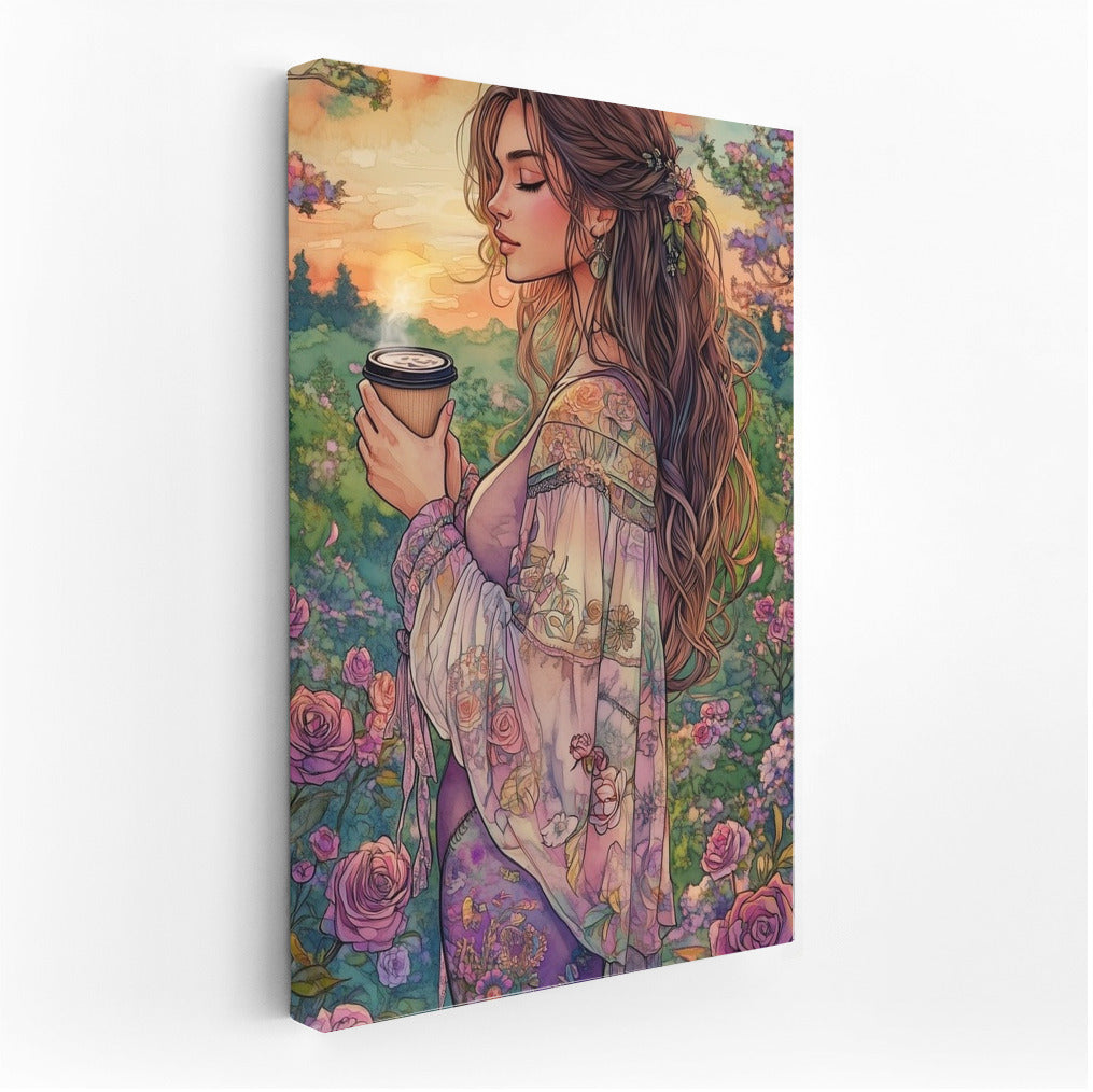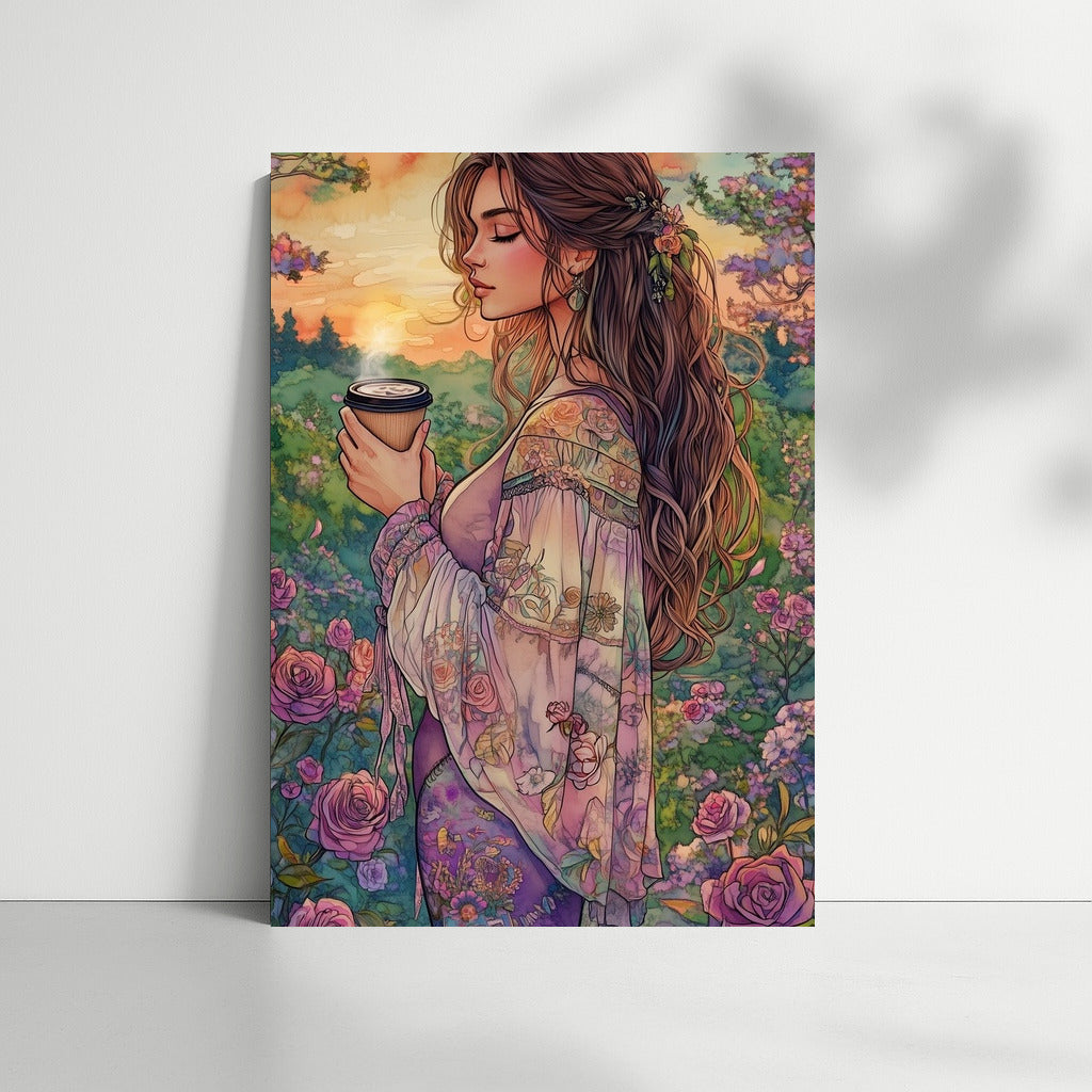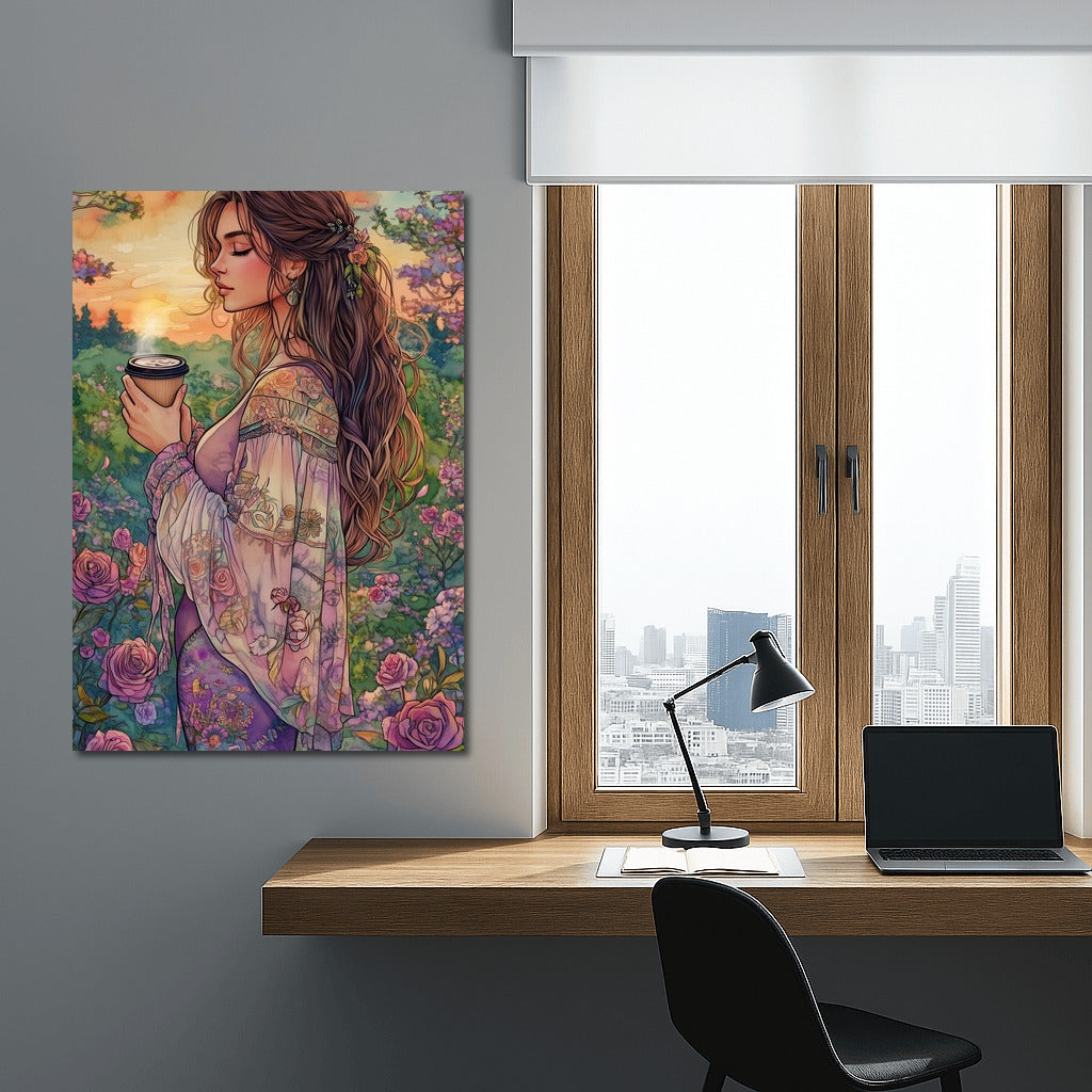 Dive into a dreamy atmosphere with this art painting. Magical sunset and flowers create a unique wall art. See more from the collection: Mixed Wall Art