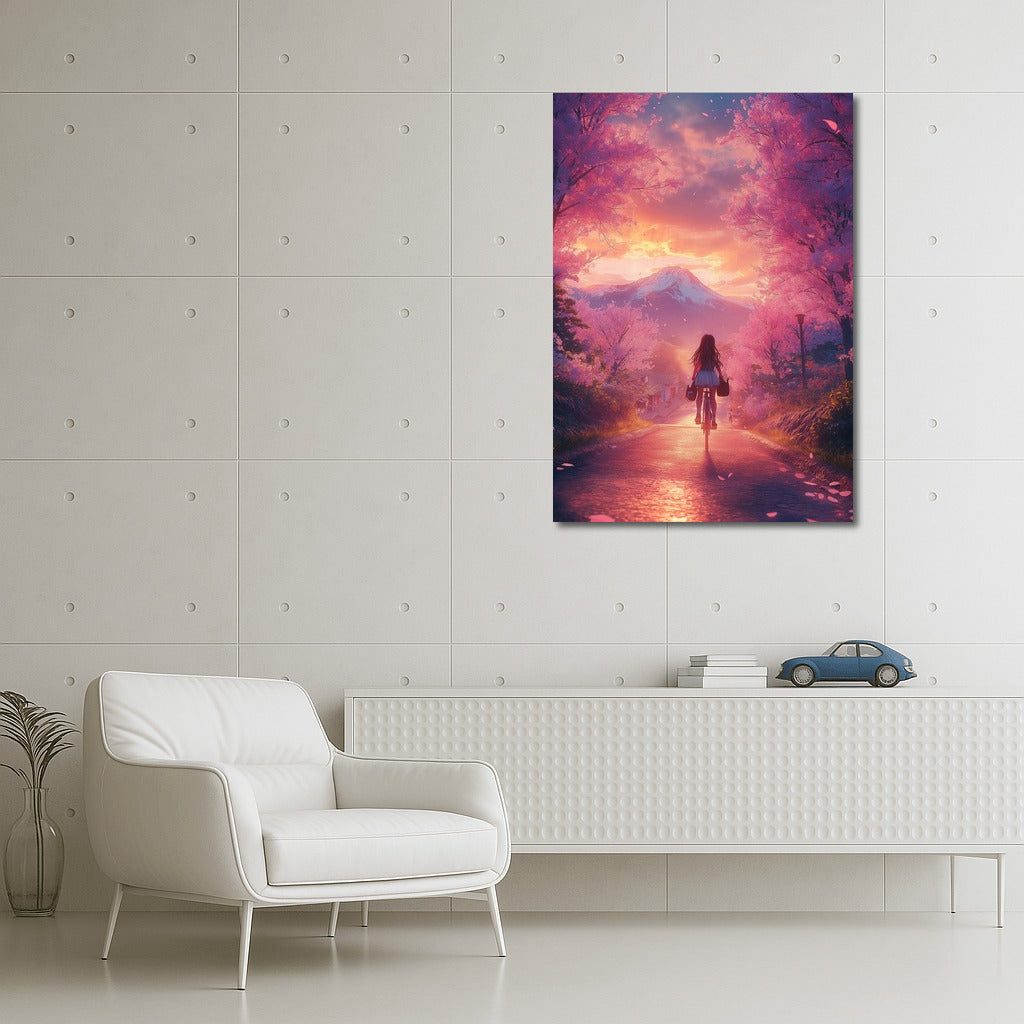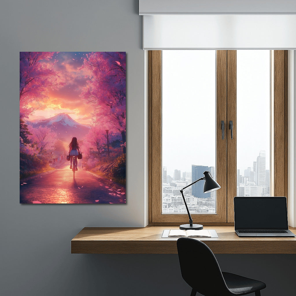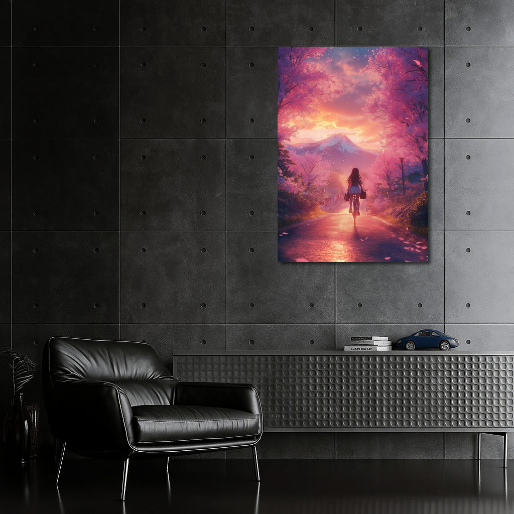 Enjoy the magic of sunset and cherry blossoms with this painting. Inspiration and peace for your space. Dream wall art! See more from the collection: Anime & Manga genres Art