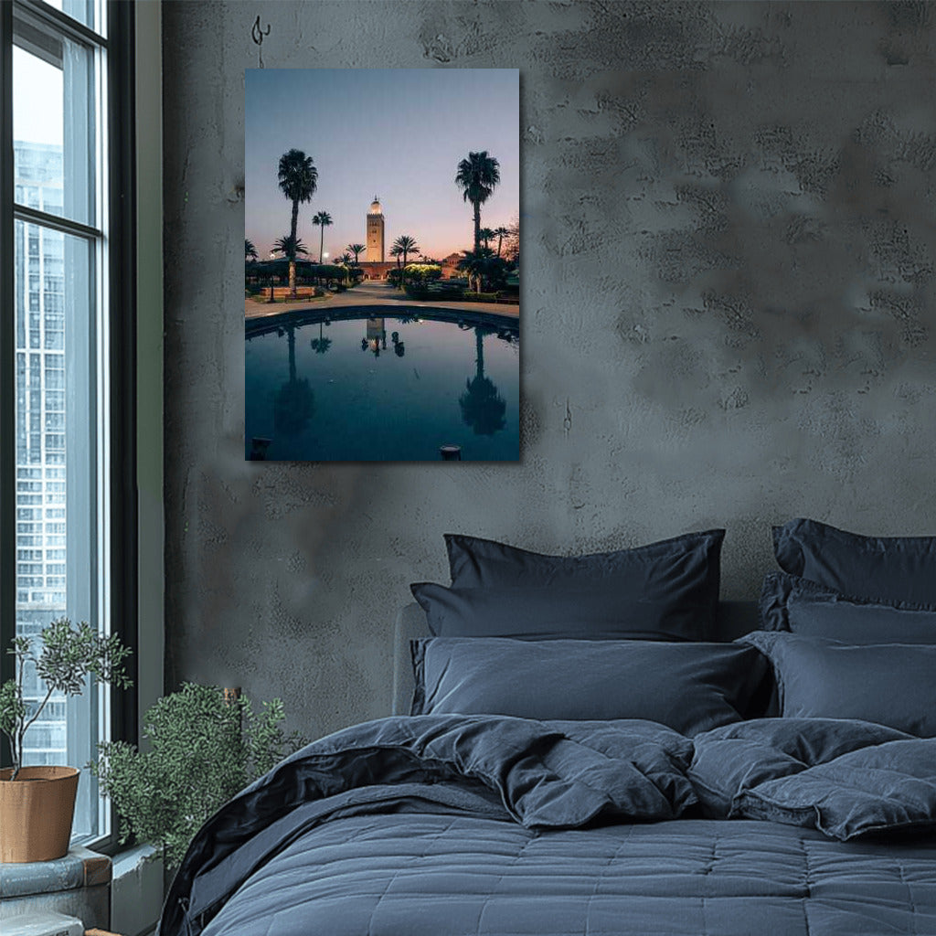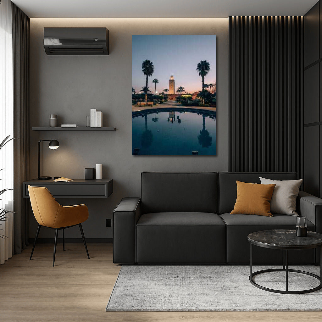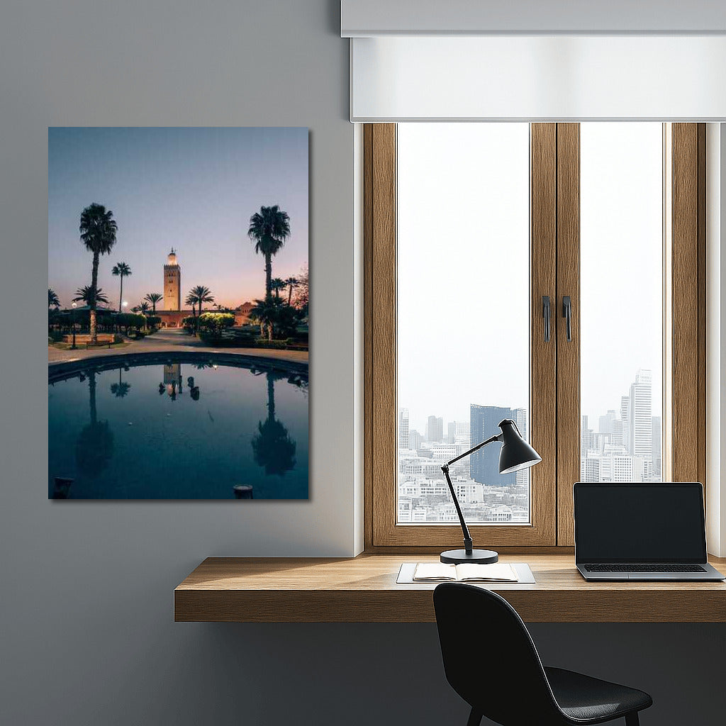 Sunset Maghreb: Marrakech cityscape on your wall. Immerse yourself in the atmosphere of an oriental fairy tale with this poster. See more from the collection: Cityscapes & Skylines Art