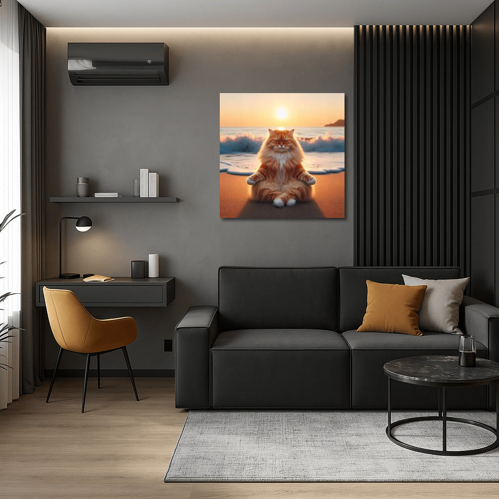 A peaceful cat enjoying the sunset on the beach. A perfect poster for lovers of meditation and wall art! See more from the collection: Animals Art