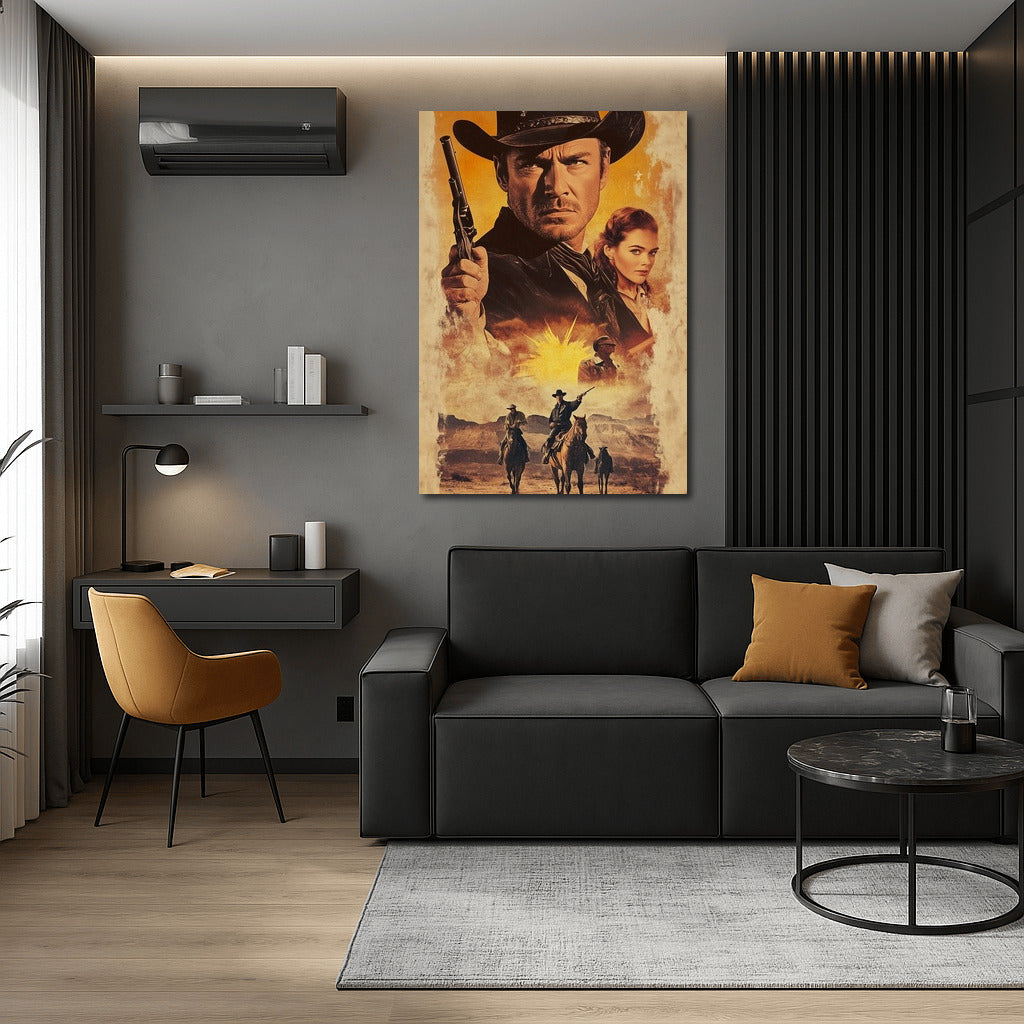 Immerse yourself in the atmosphere of the Wild West with this painting! Wall art for lovers of cinema and exciting adventures. See more from the collection: Mixed Wall Art
