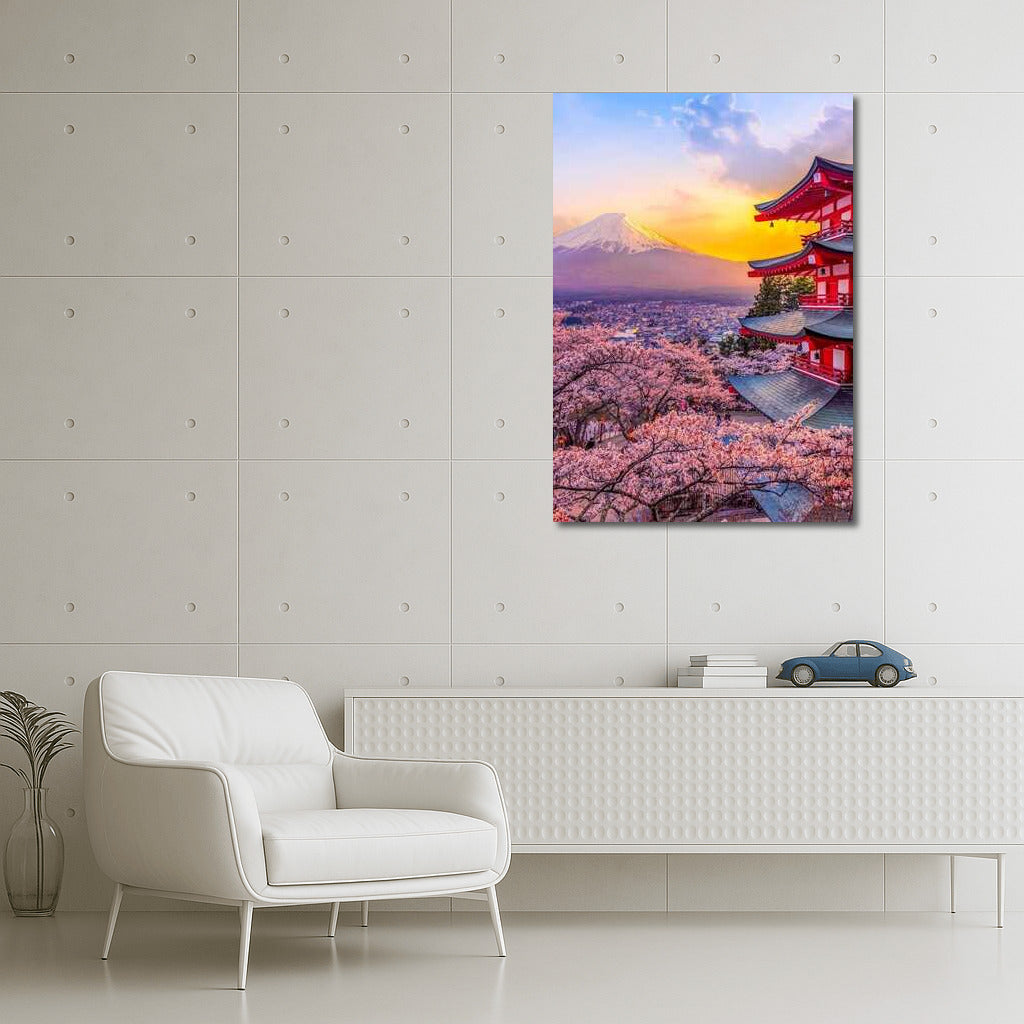 Sunset over Fujiyama: Sakura and Temple of Japan Wall Art