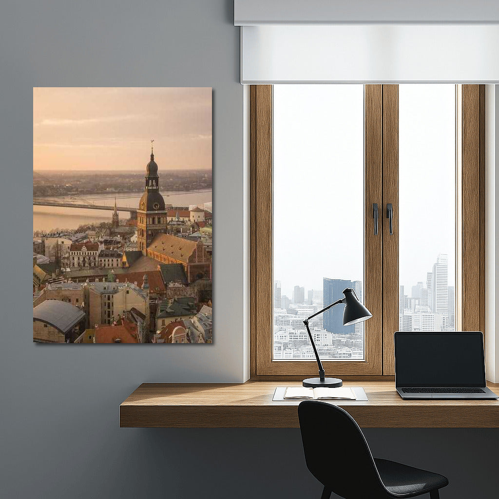 Sunset over an ancient town: a poster with a view of the heart of Lithuania, where history meets the charm of rural life. See more from the collection: Country Art