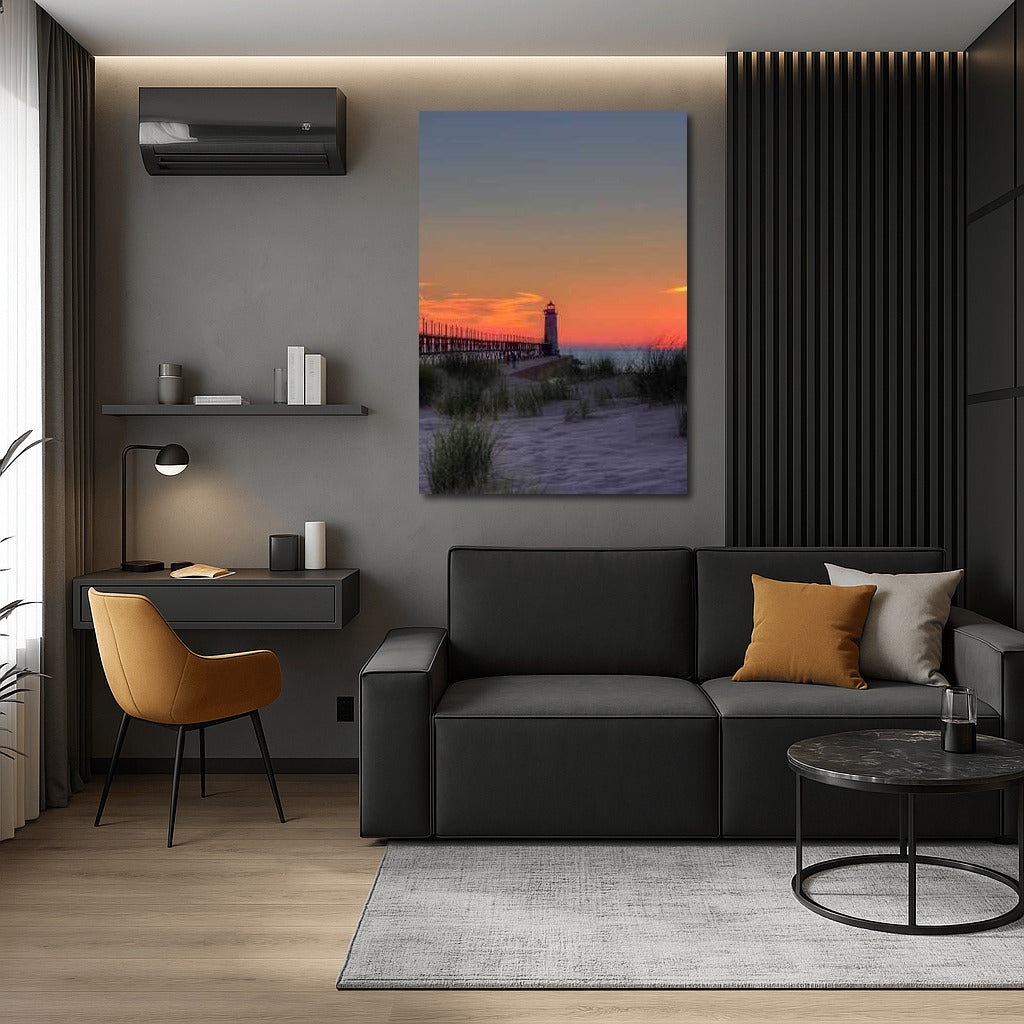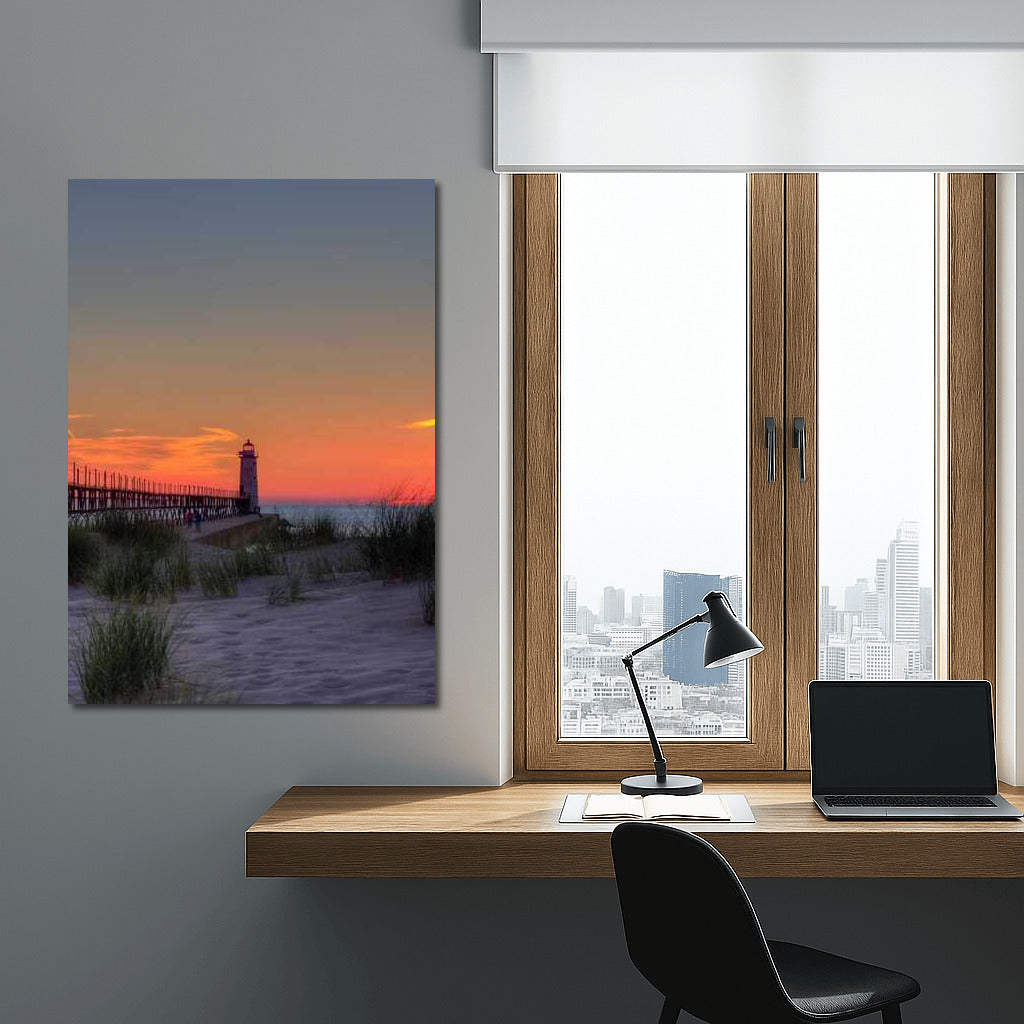 Sunset over Michigan Lighthouse: Natural Beauty of the USA Wall Art