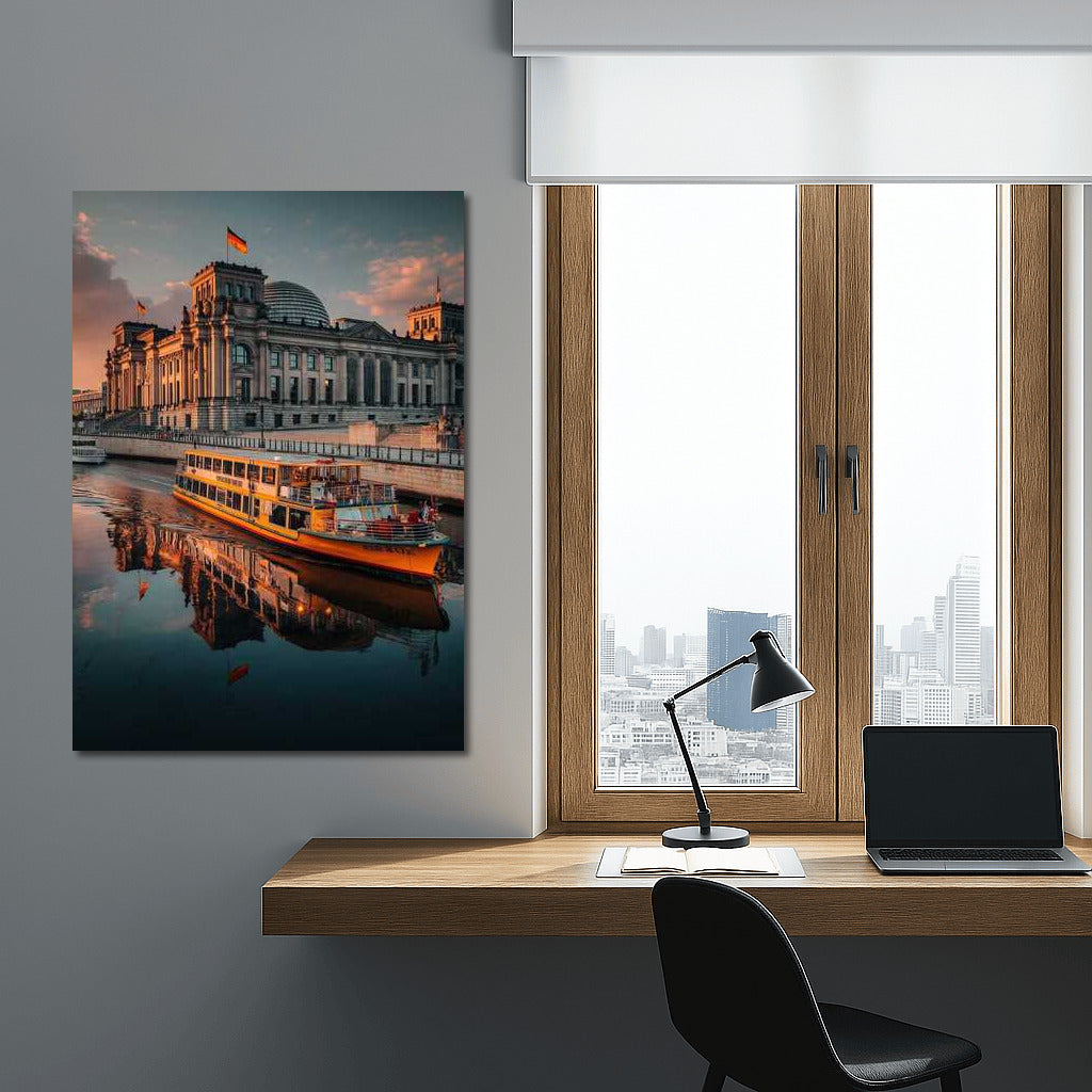 Sunset splendor of the river and architecture of Germany on the poster. Transform your interior with this wall art about the wonderland. See more from the collection: Country Art