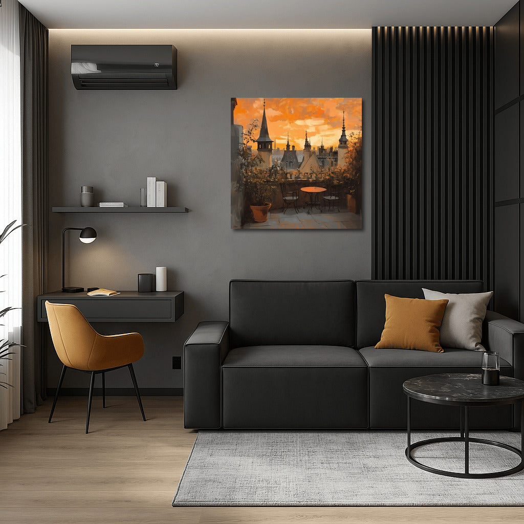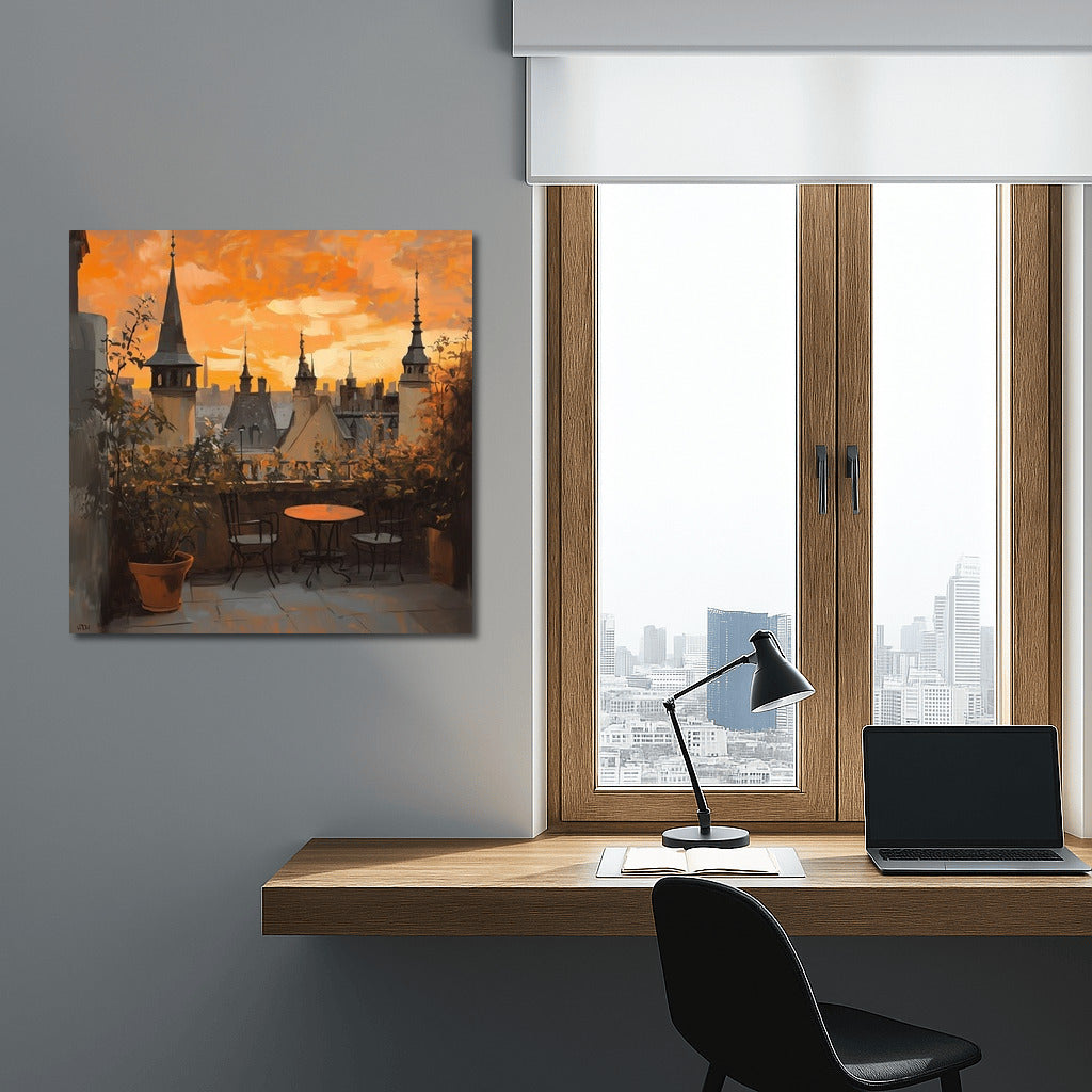 Immerse yourself in the atmosphere of the evening city with this wall art. The sunset and ancient roofs create a cozy and romantic atmosphere. See more from the collection: Mixed Wall Art