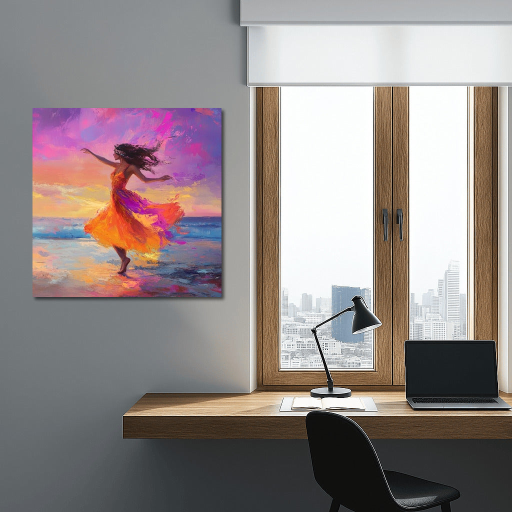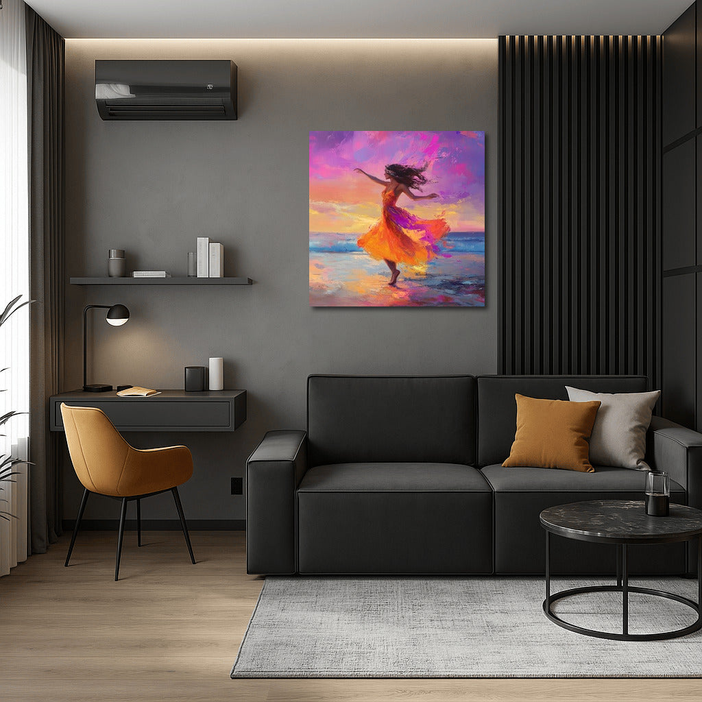 Vibrant poster: dancing against the backdrop of a sunset, the canvas is filled with movement and color. Wall art that brings life to any space! See more from the collection: Mixed Wall Art