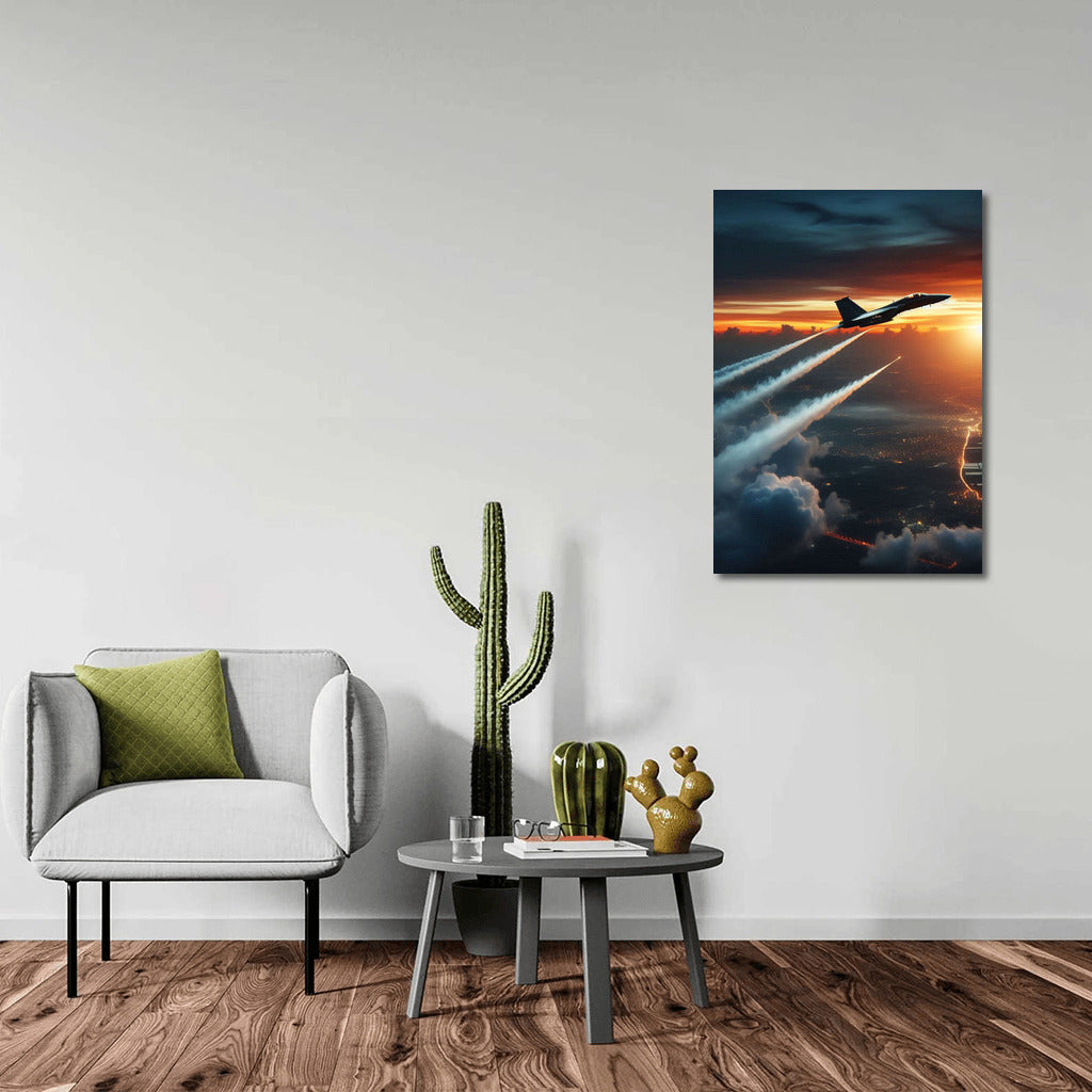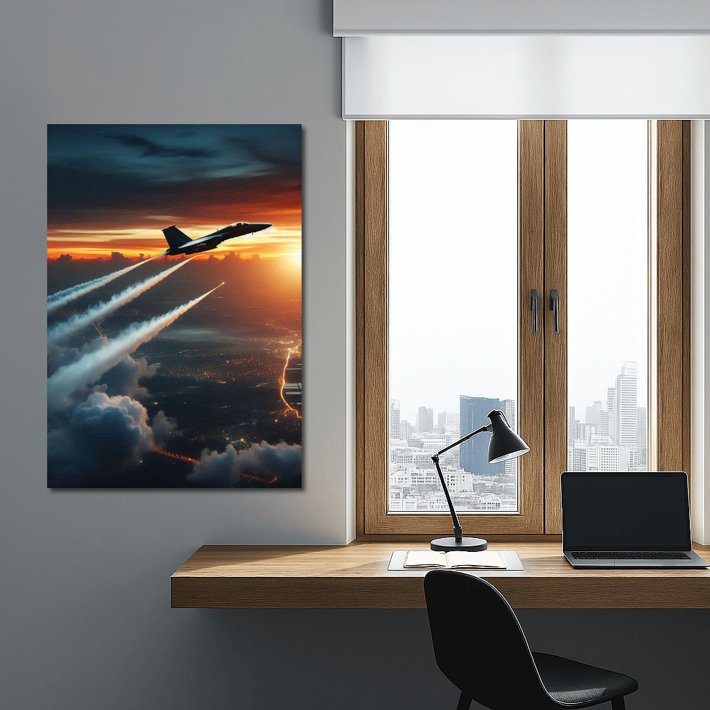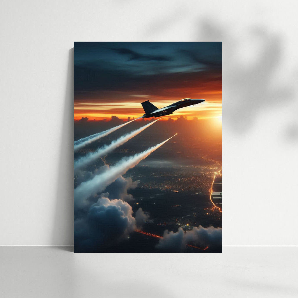 Conquer the horizons with the Military Aircraft Runway 3 poster: the dynamics and power of a military aircraft against the backdrop of a breathtaking sunset. See more from the collection: Military & Veterans Art