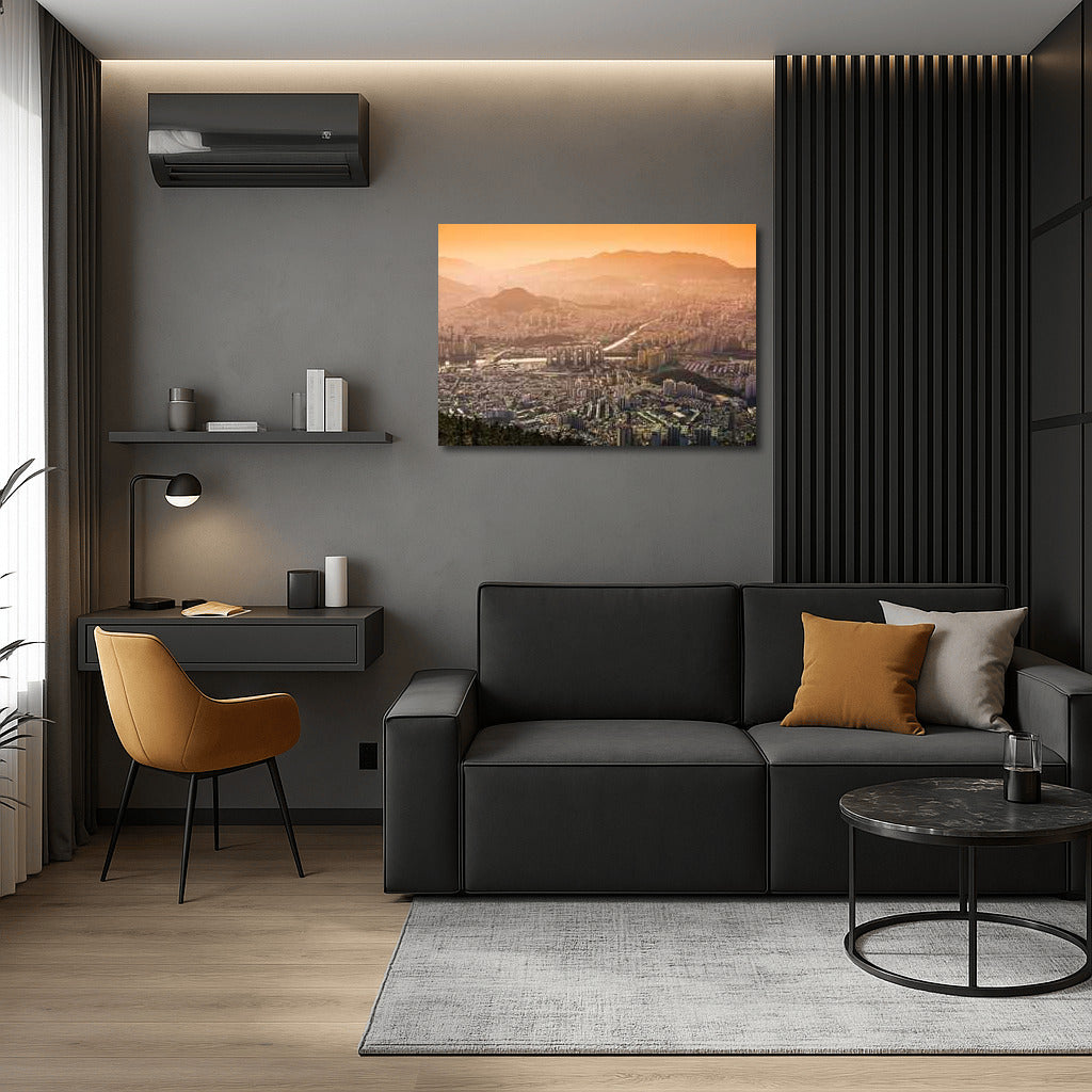 Sunset Seoul: Bring your walls to life with a unique poster Cityscapes Skylines, Seoul South Korea. A dream city under your own hand-made sky. See more from the collection: Cityscapes & Skylines Art