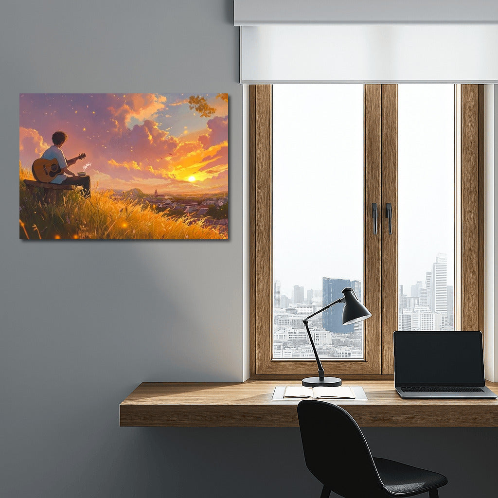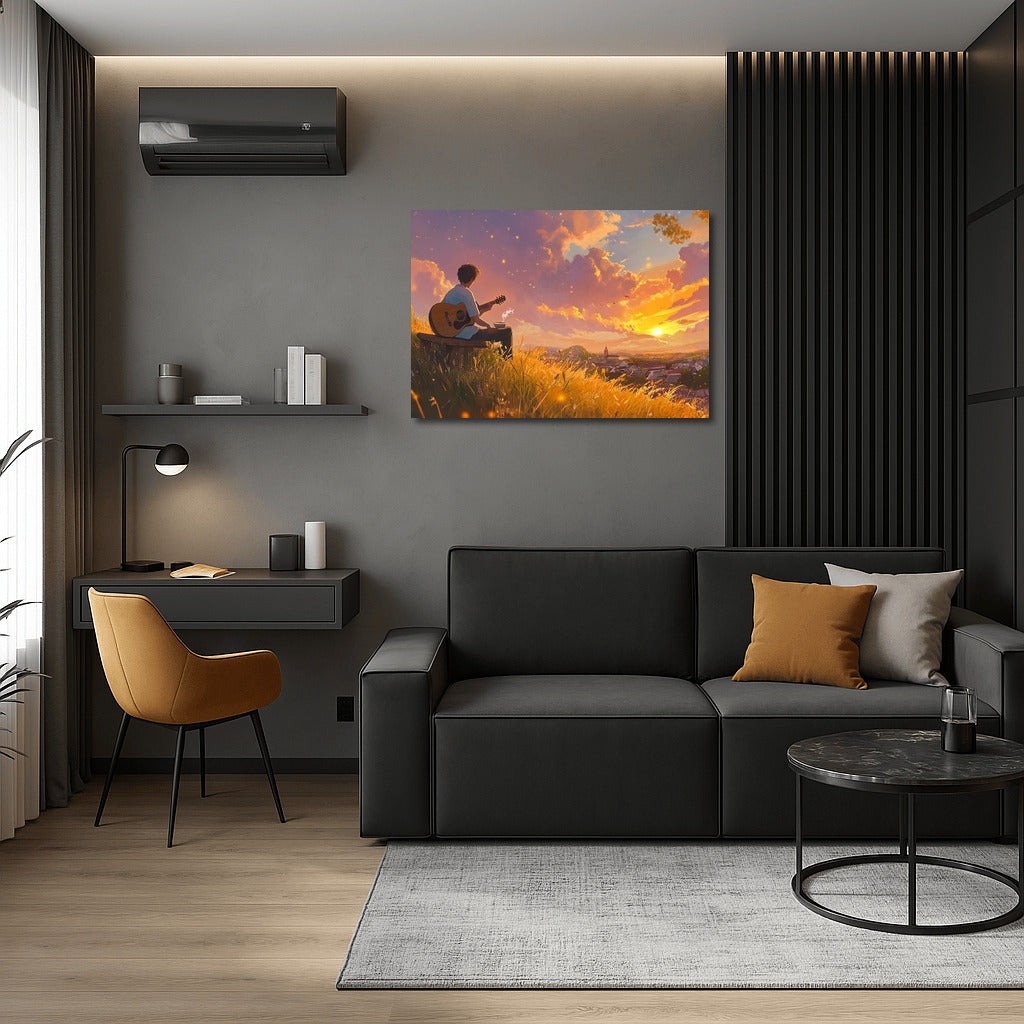 Sunset and Chords Poster: Immersive in dreamy wall art where melodies meet the evening sky. See more from the collection: Anime & Manga genres Art