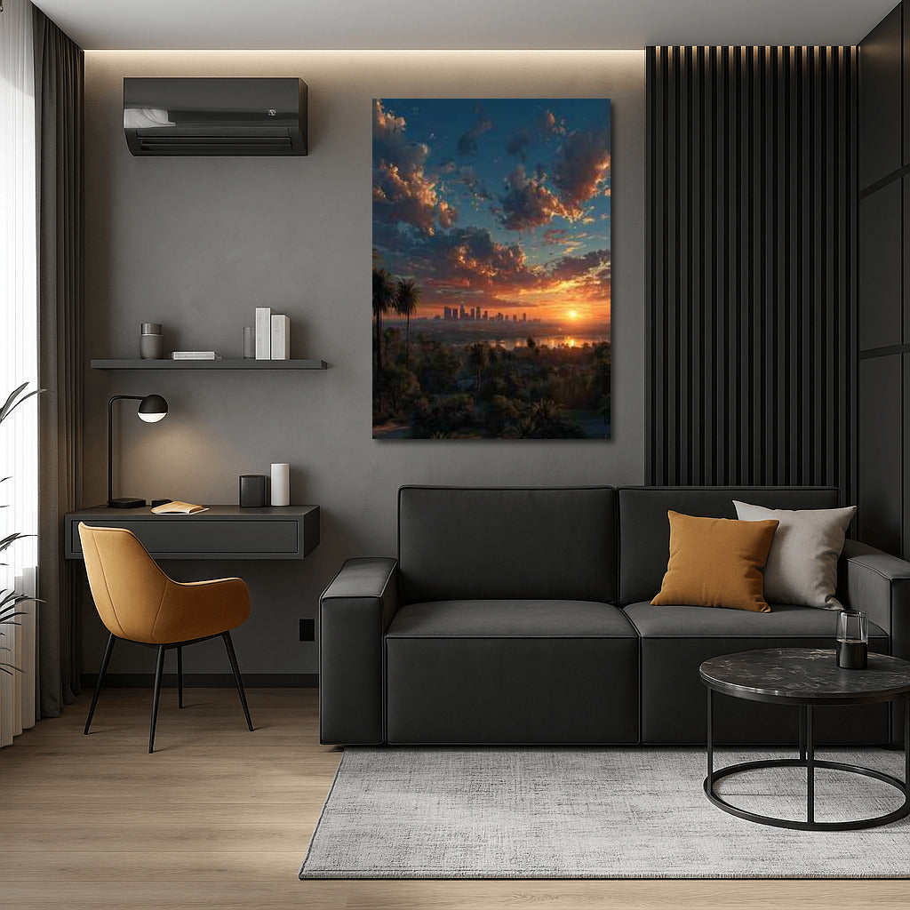 Los Angeles Sunset: Wall Art That Brings Life to Your Interior. Experience the city with a dreamy skyline. See more from the collection: Cityscapes & Skylines Art