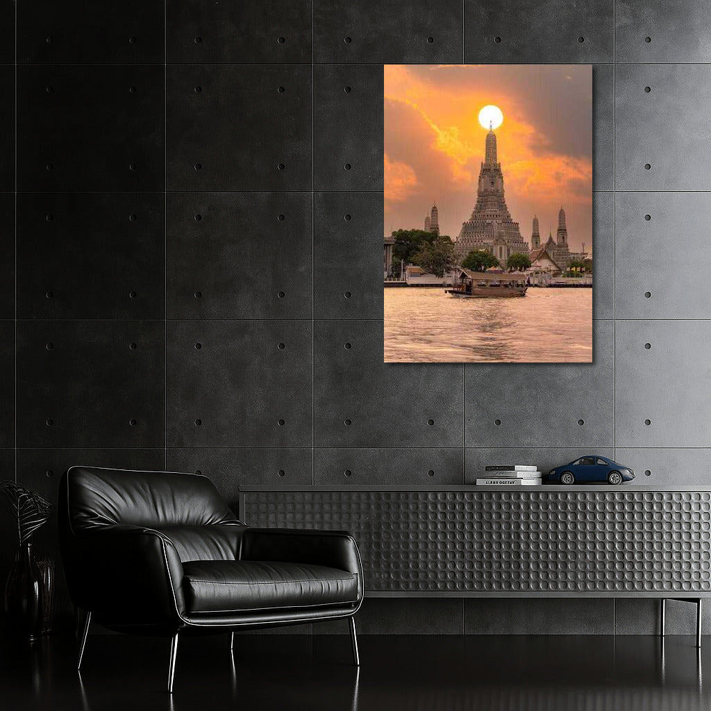 Shrouded in sunset, a temple in Thailand comes to life on a poster, turning the walls into a portal to a world of exotic beauty. See more from the collection: Country Art