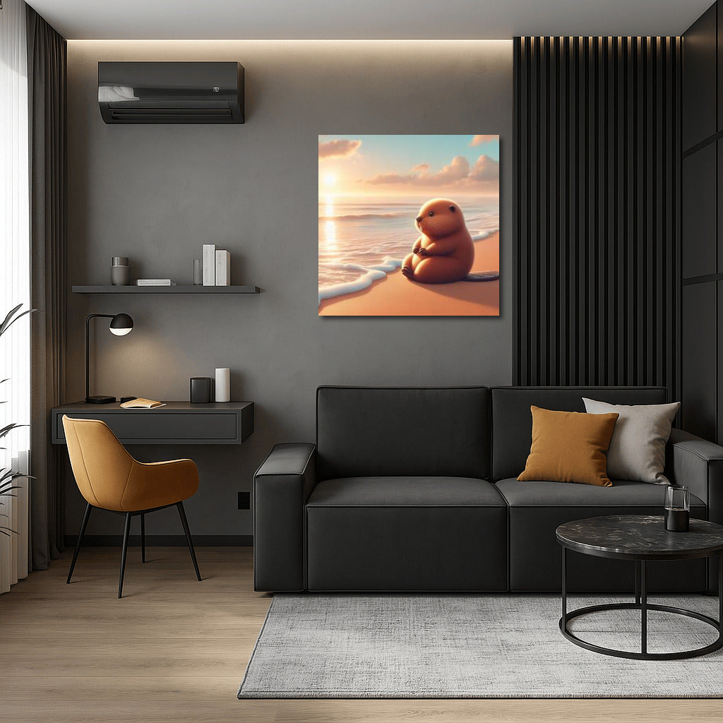 Sunset Tranquility: Beaver Meditates on the Beach Wall Art