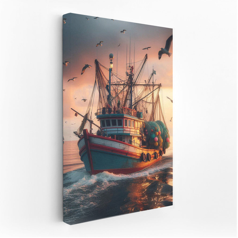 Sunset Trawlers: Twilight's Sea Romance Wall Art