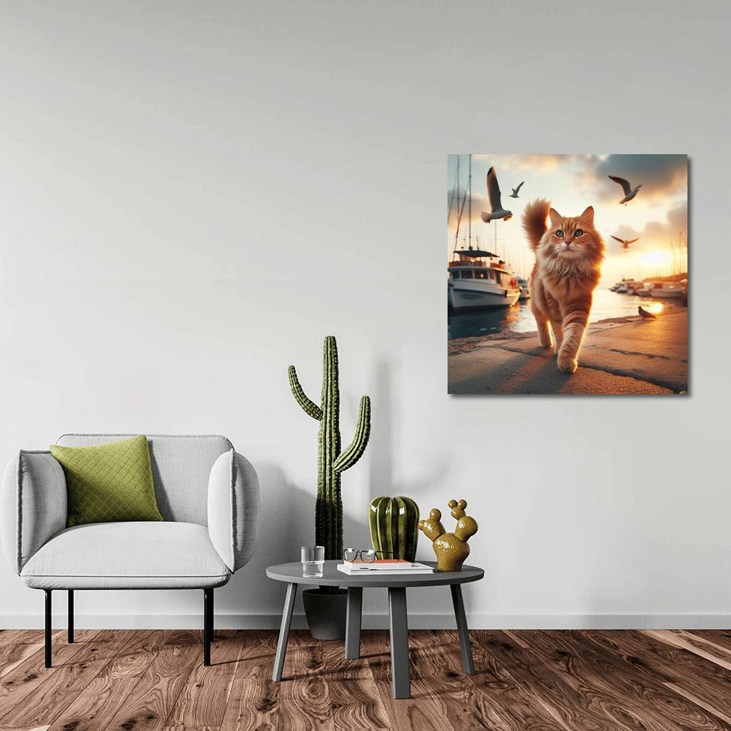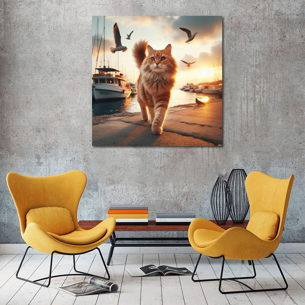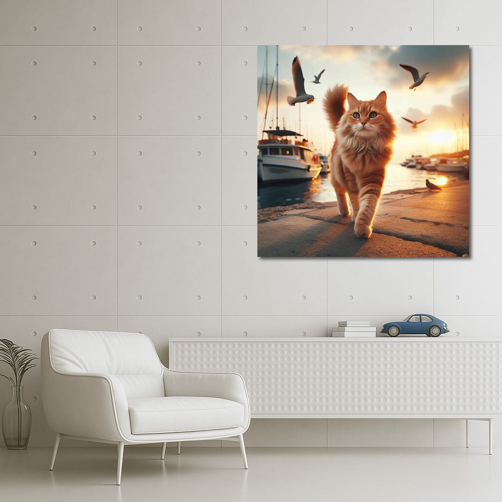 Sunset Walk of the Cat along the Embankment: Evening Comfort and Dreaminess Wall Art