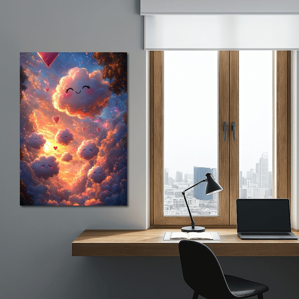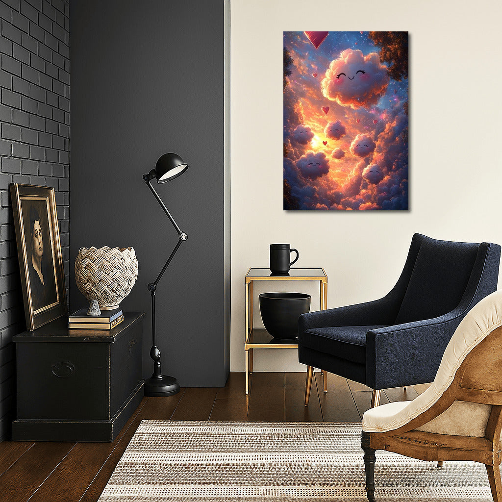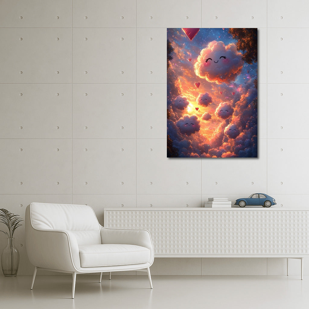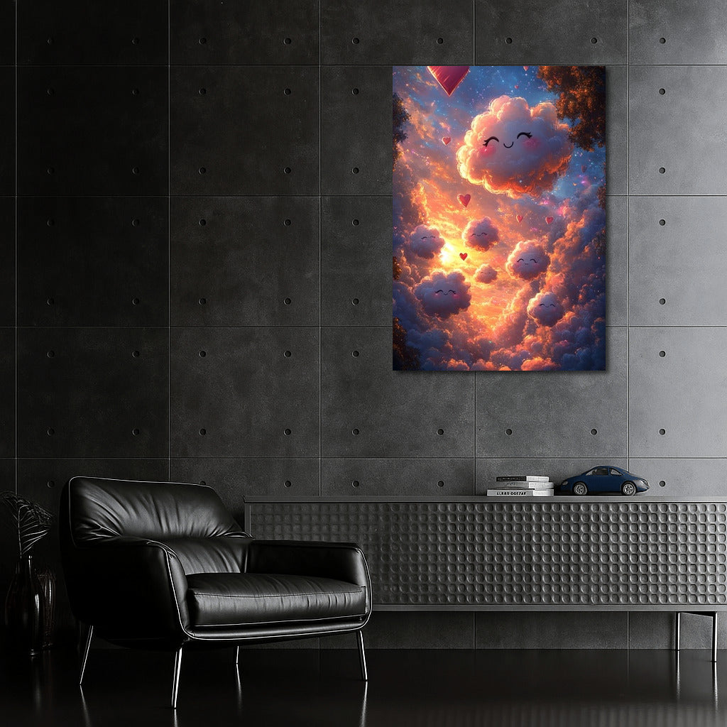 Cheerful clouds dance in the sunset rays, filling your interior with joy! The perfect poster for a bright wall art. See more from the collection: Mixed Wall Art