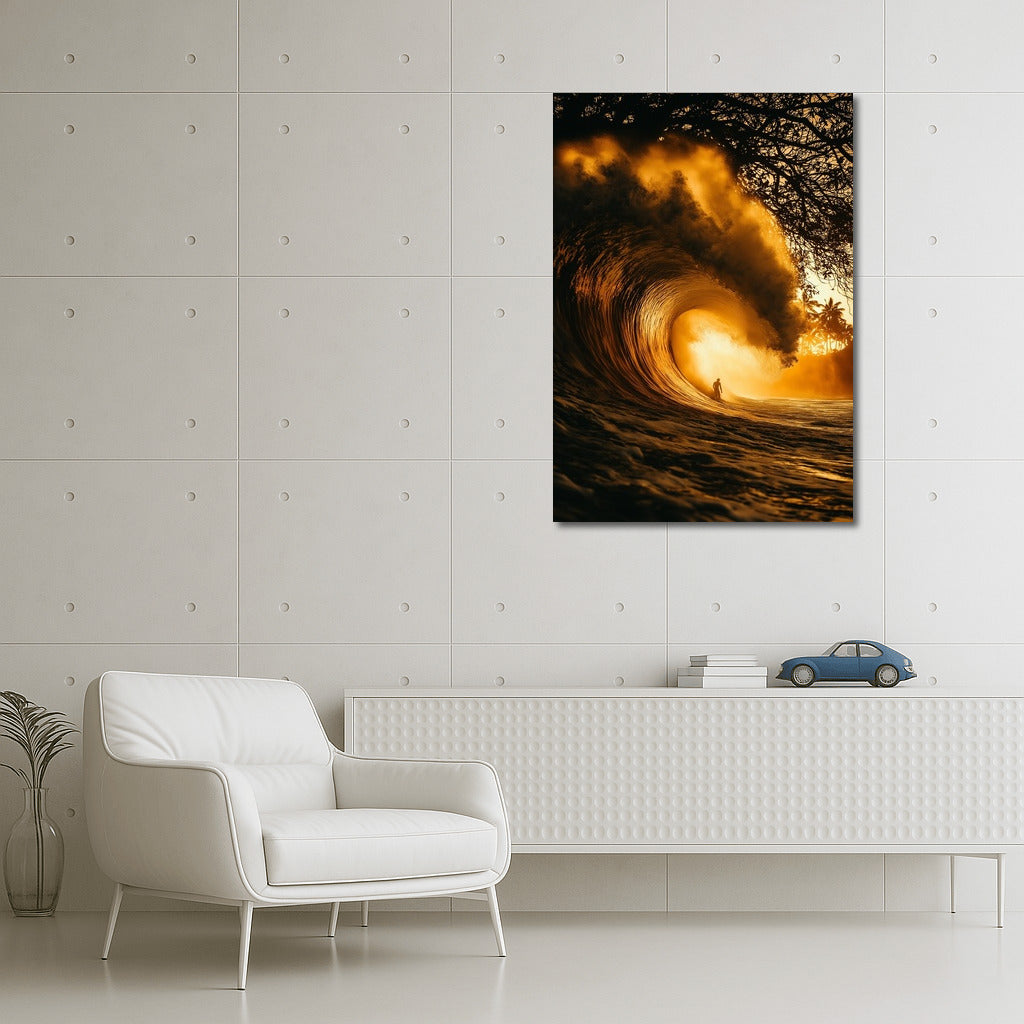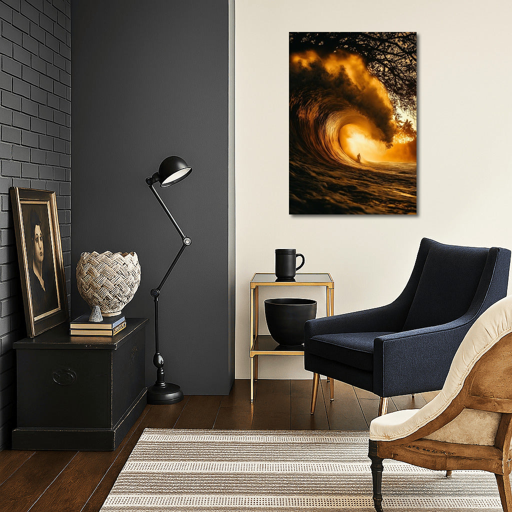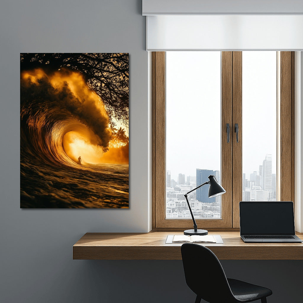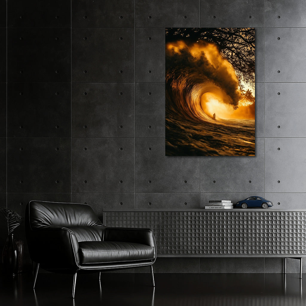 Immerse yourself in the magic of sunset with a poster where a wave embraces a silhouette. Wall art that brings nature to life in your interior. See more from the collection: Mixed Wall Art