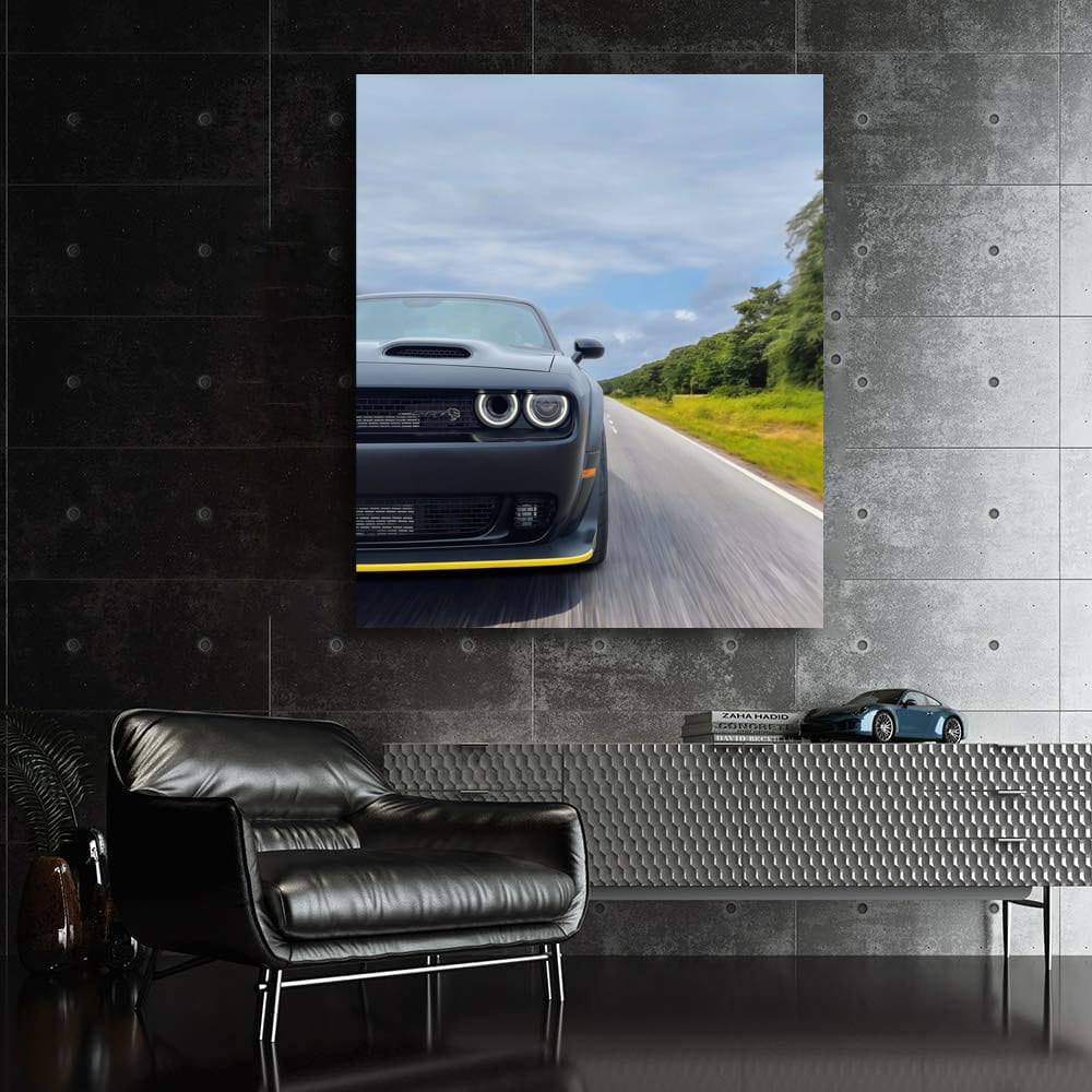 Supercharged Dodge on Highway - Thrilling Power Ride Wall Art