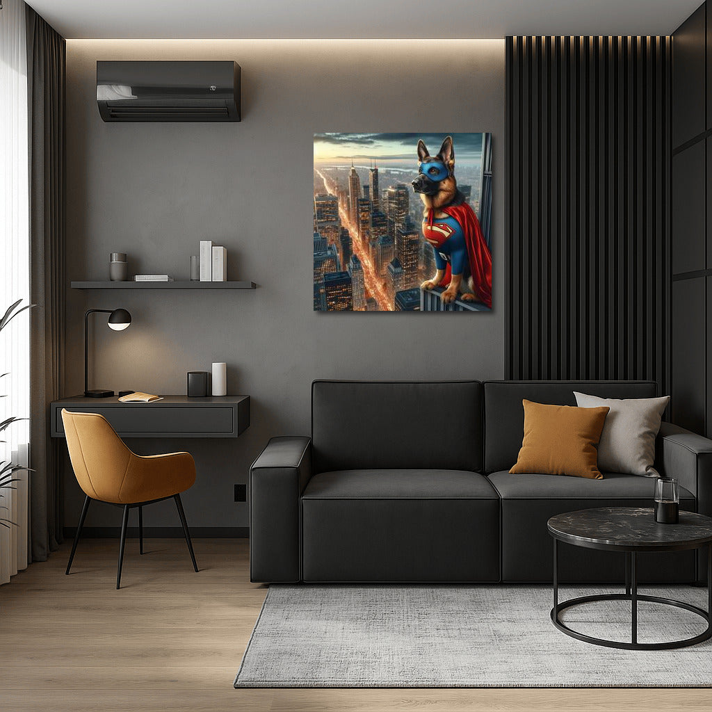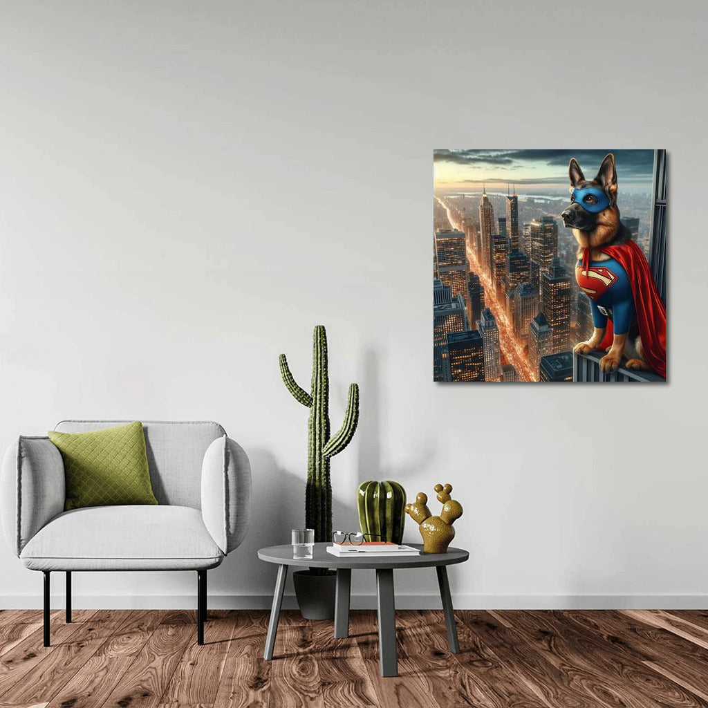 A brave superdog guarding the city! This poster will add dynamics and strength to your wall art. See more from the collection: Animals Art