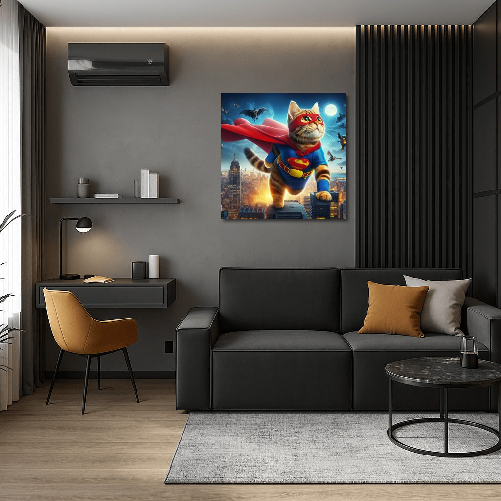 Superhero Cat: Saving the City from the Villain Wall Art
