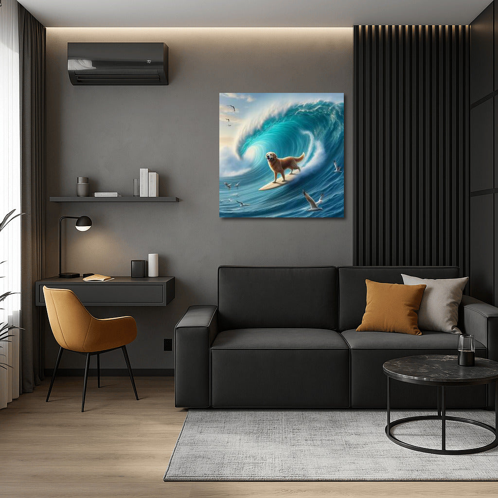 Surfer on Four Legs: Dog on a Giant Wave Wall Art