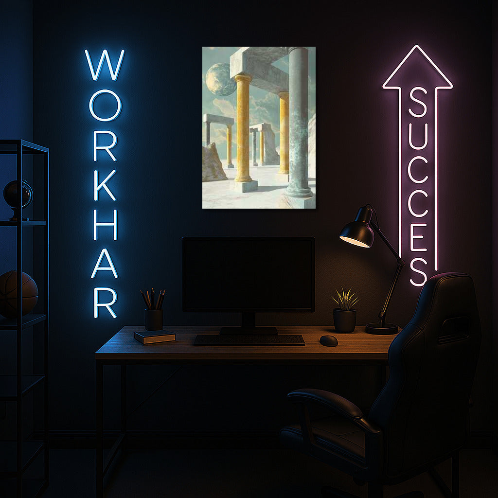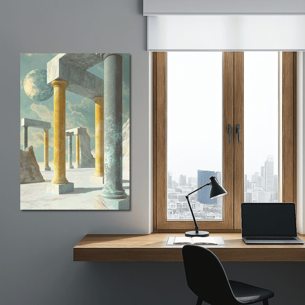 Dive into a world of fantasy with wall art: an abstract structure with columns creating a surreal harmony. See more from the collection: Abstract Art