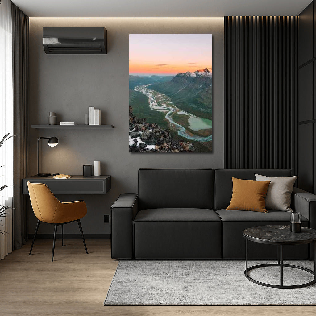 Sweden's Sunset Symphony: Pink Rivers and Mountains Wall Art