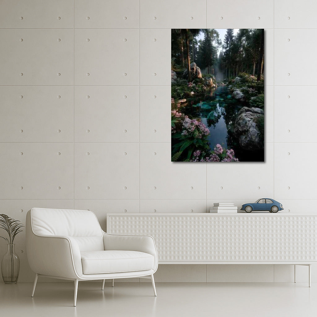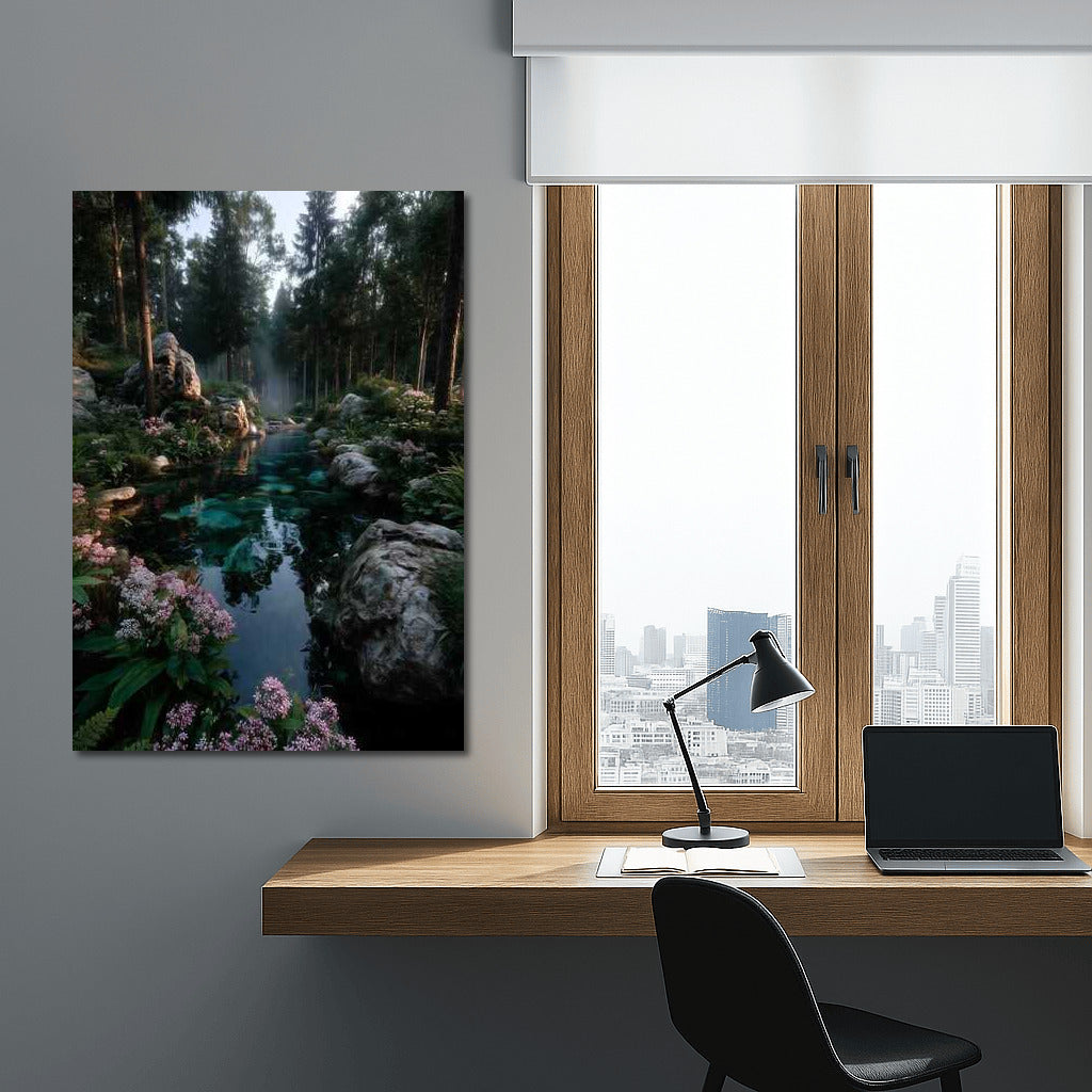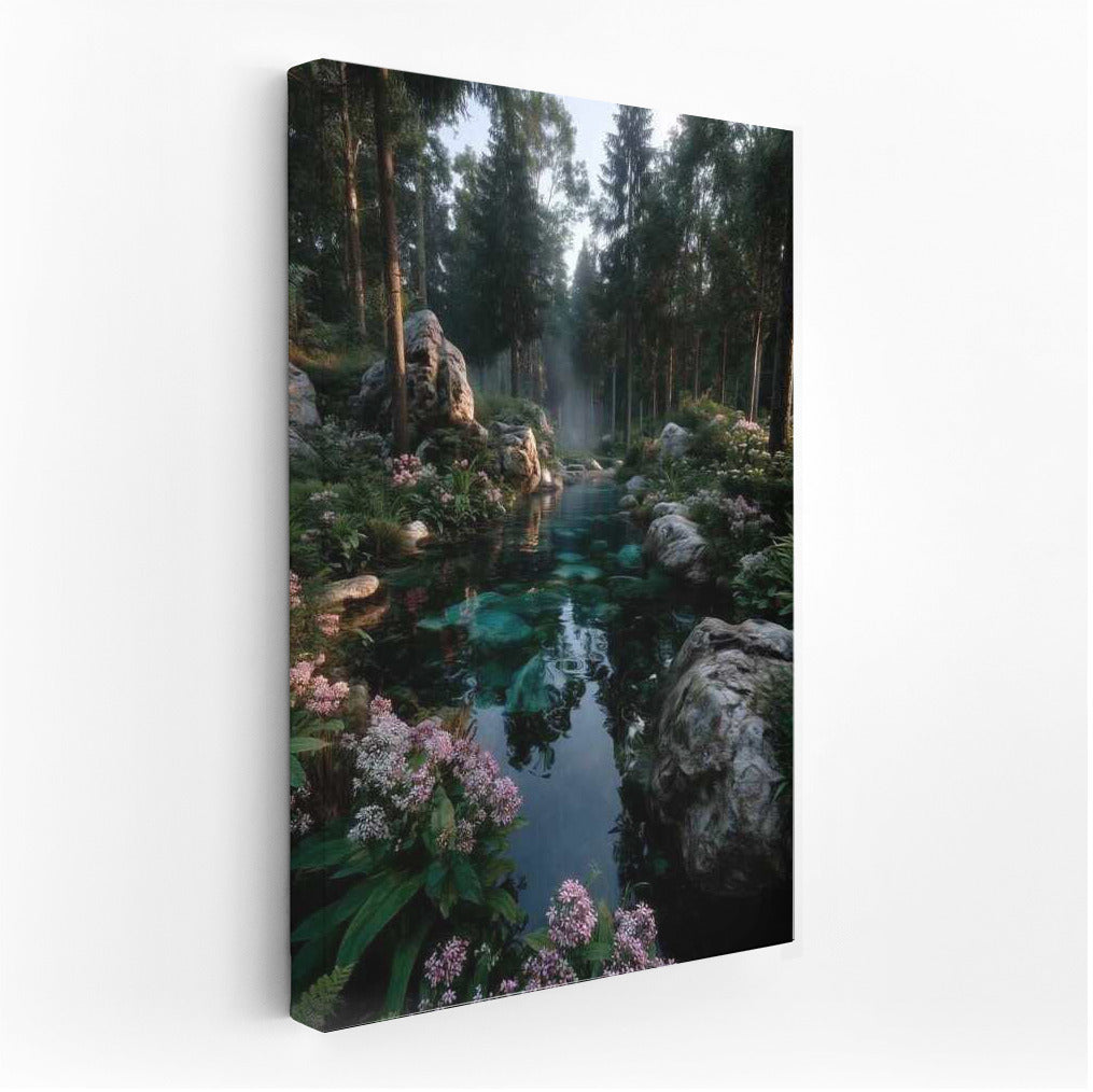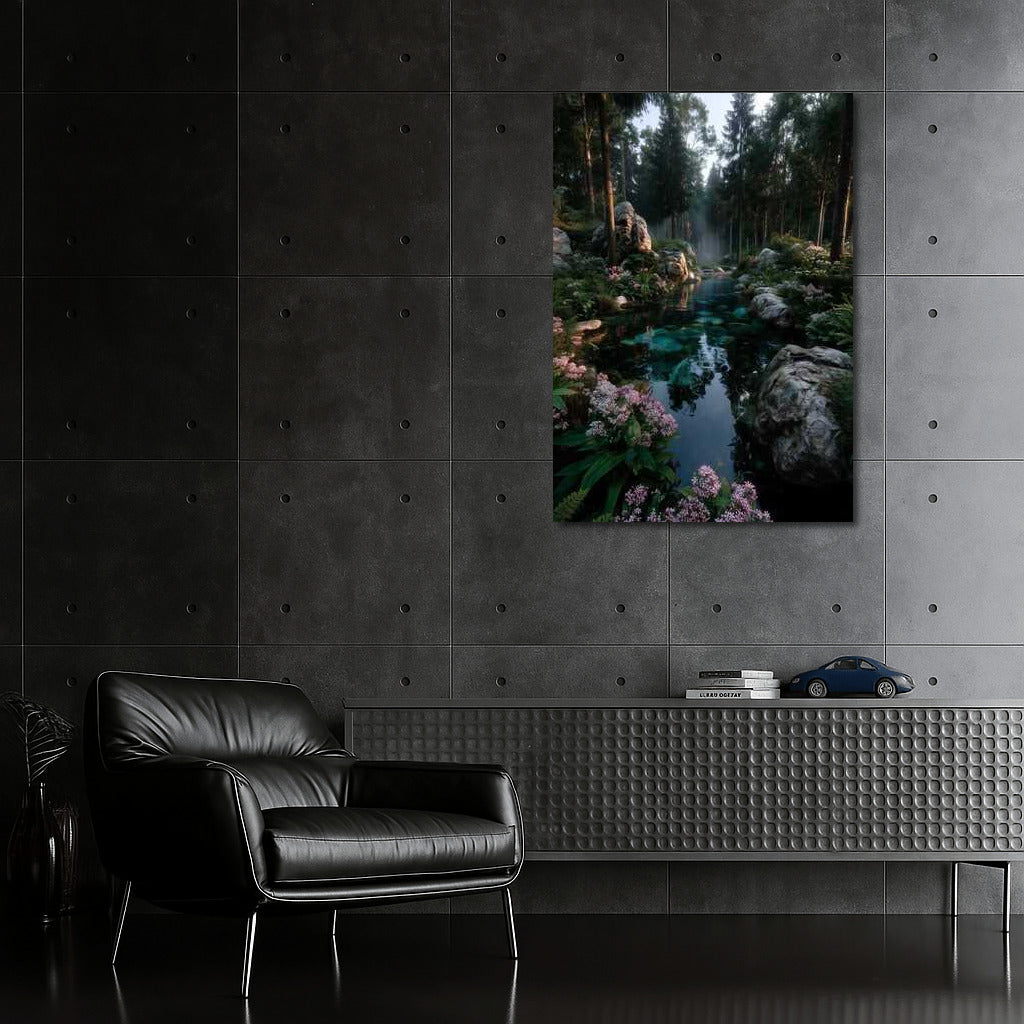 Immerse yourself in the tranquility of Swedish nature with this poster. A quiet forest, a sparkling stream - wall art for the soul. See more from the collection: Country Art