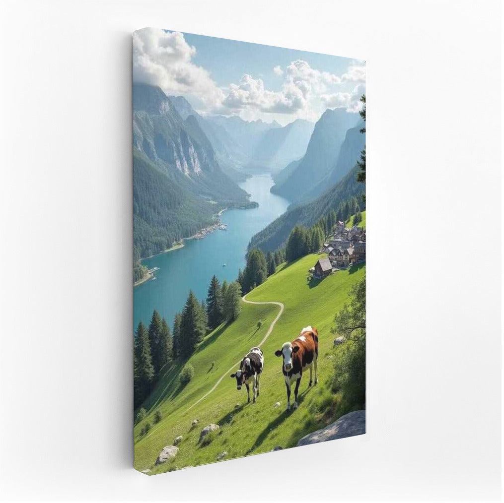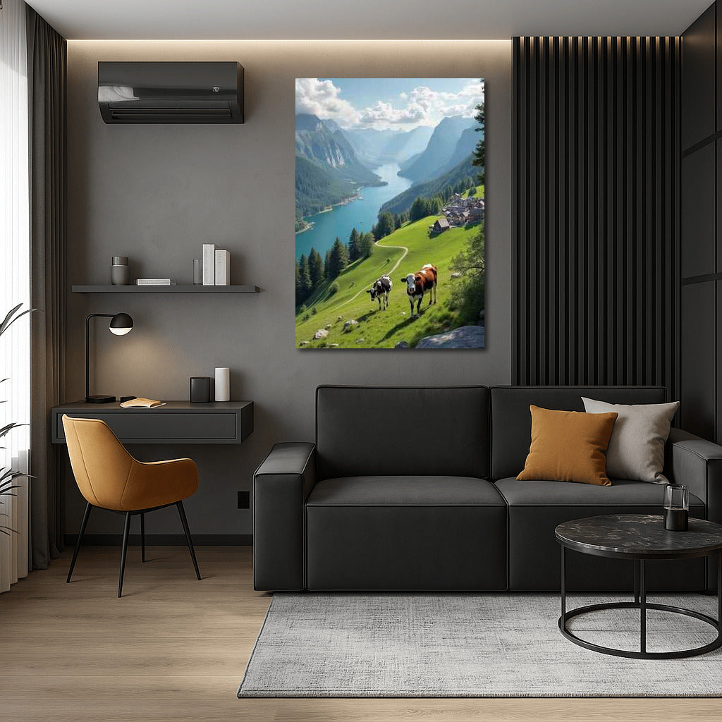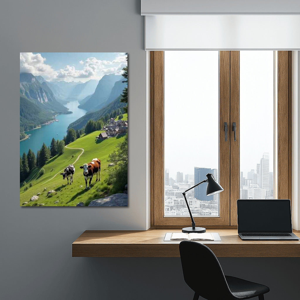 The poster immerses you in the enchanting nature of Sweden: emerald hills, peaceful cows and calm lakes. Wall art for the soul. See more from the collection: Country Art