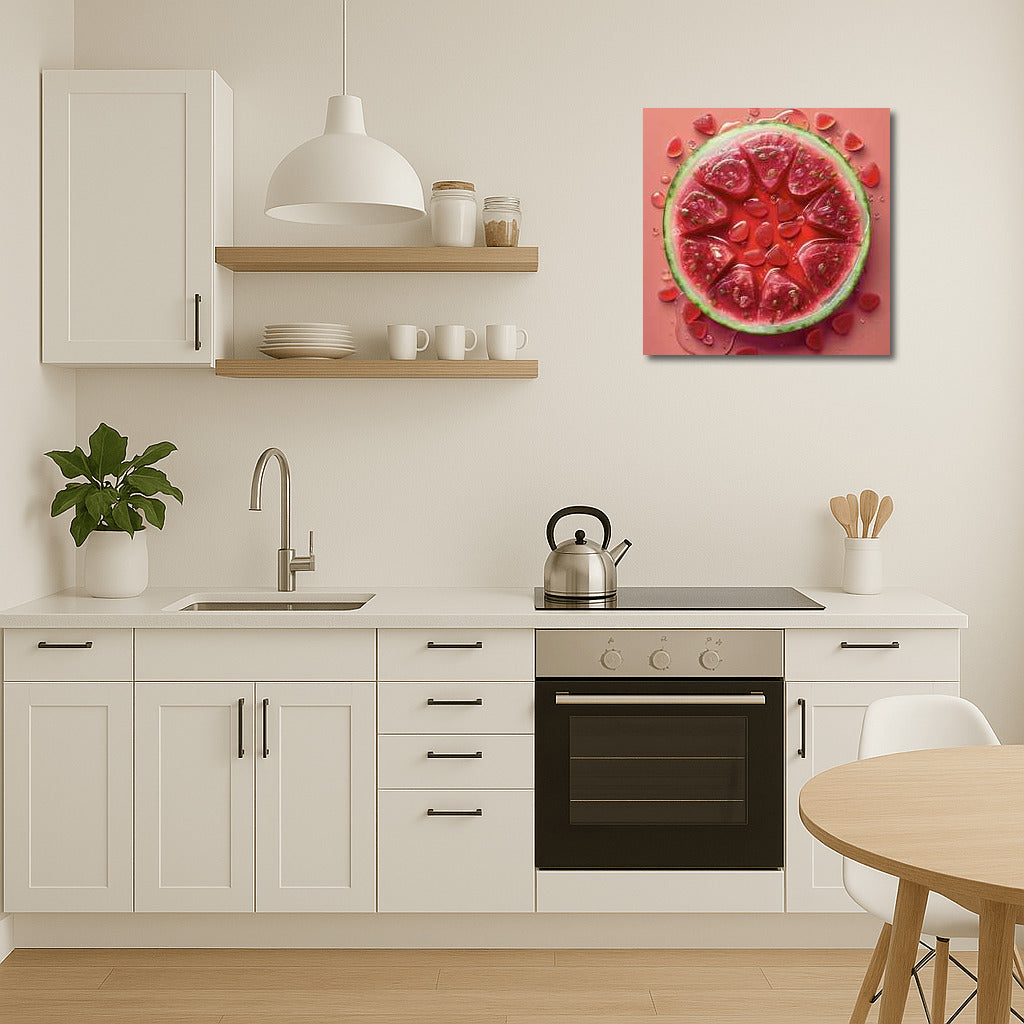 A vibrant painting with a range of watermelon desserts. The poster fills the walls with the freshness and sweetness of watermelon gummies. See more from the collection: Food Art
