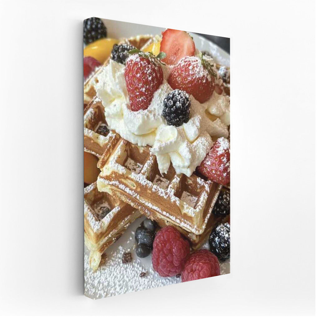 Delicate waffles with berries and cream. This poster will become a bright accent on your kitchen wall, inspiring culinary feats. See more from the collection: Desserts & Sweets Art