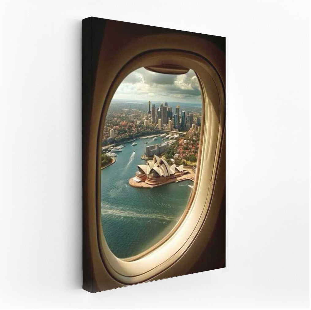 Experience Australia with this painting. Breathtaking view of Sydney through the porthole - wall art of dreams. See more from the collection: Australia Art