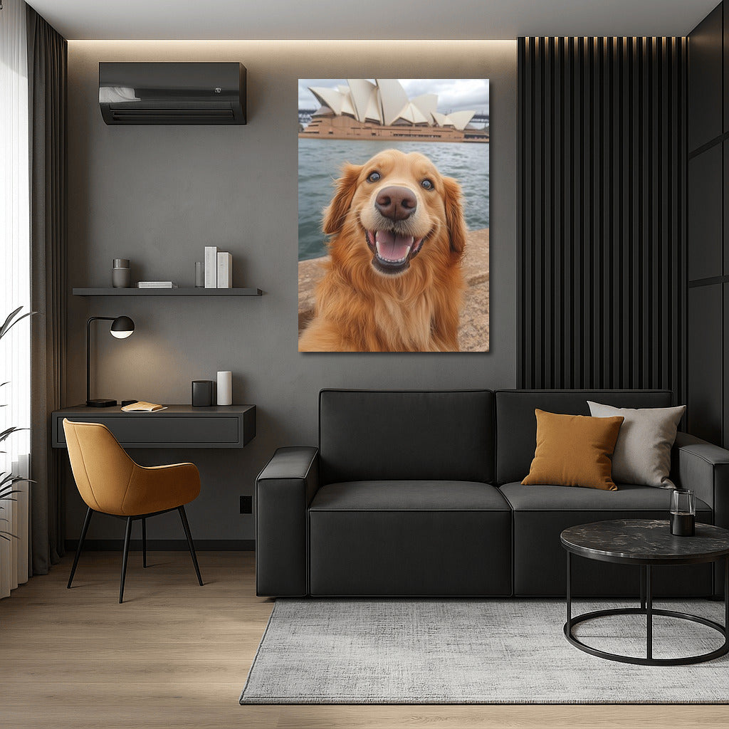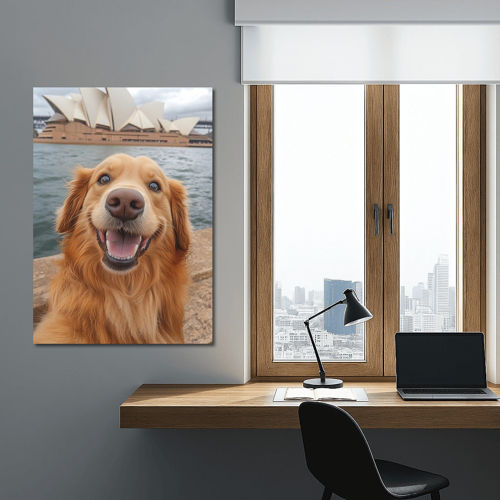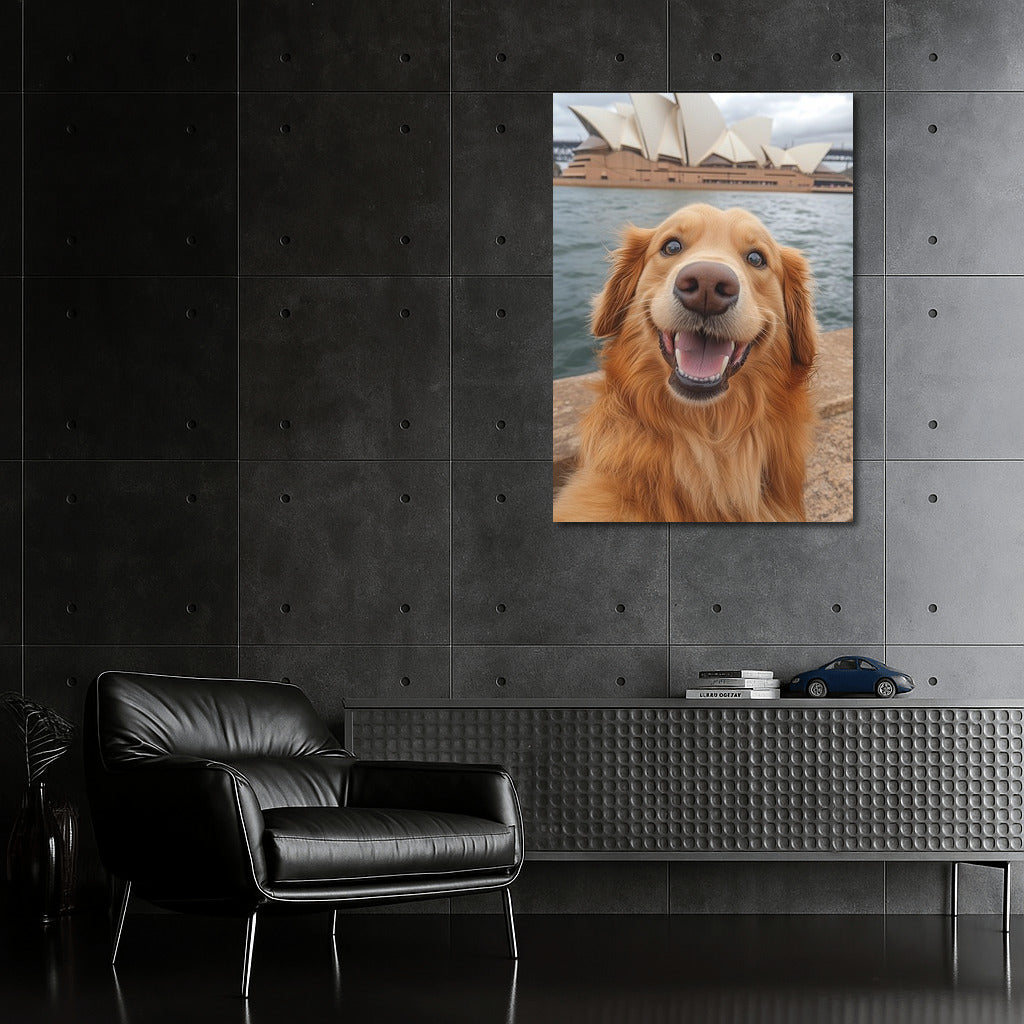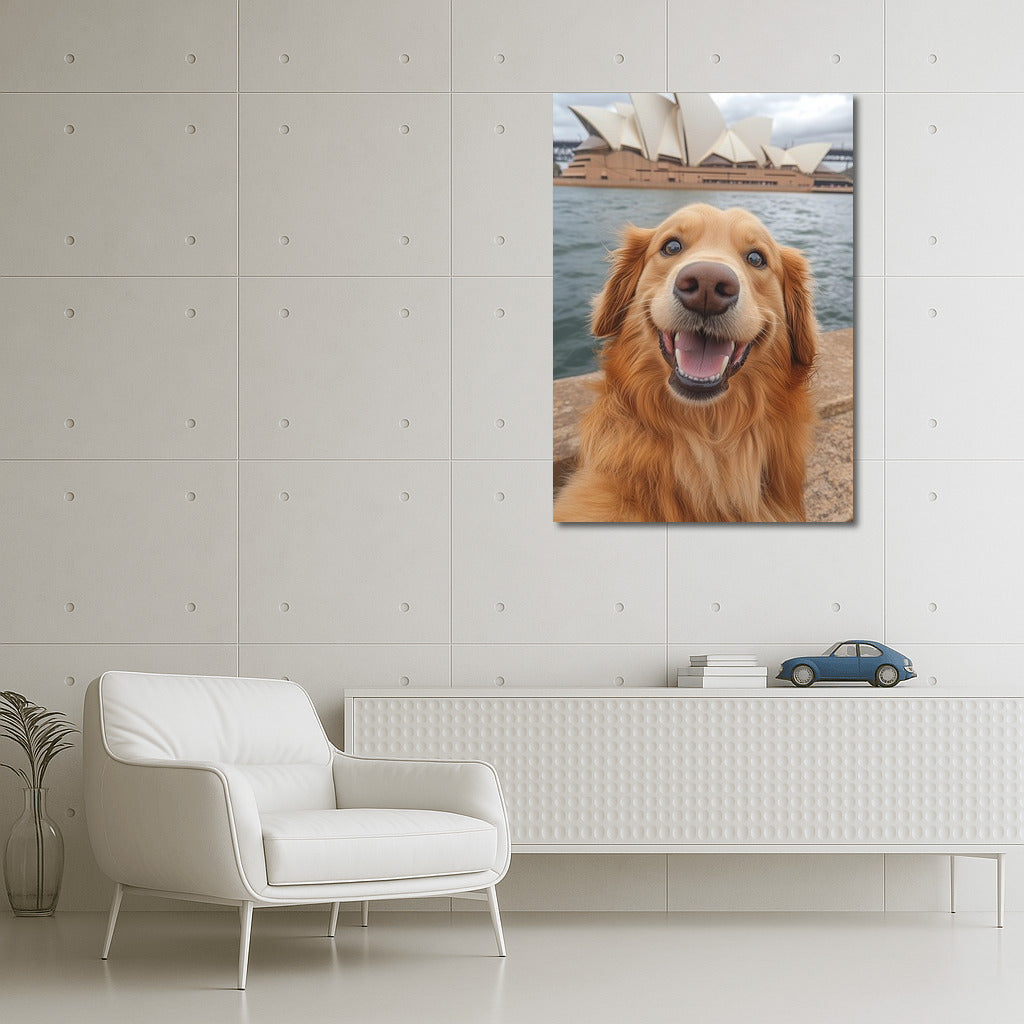 This golden retriever poster with the Sydney Opera House in the background is the perfect wall art for those who appreciate joy and travel! See more from the collection: Animals Art