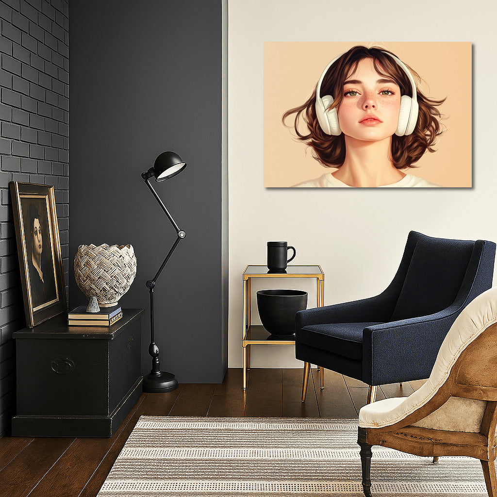 Enjoy harmony with the art poster: dreaminess, music and inspiration are intertwined in this wall art. See more from the collection: Wall Art with Women