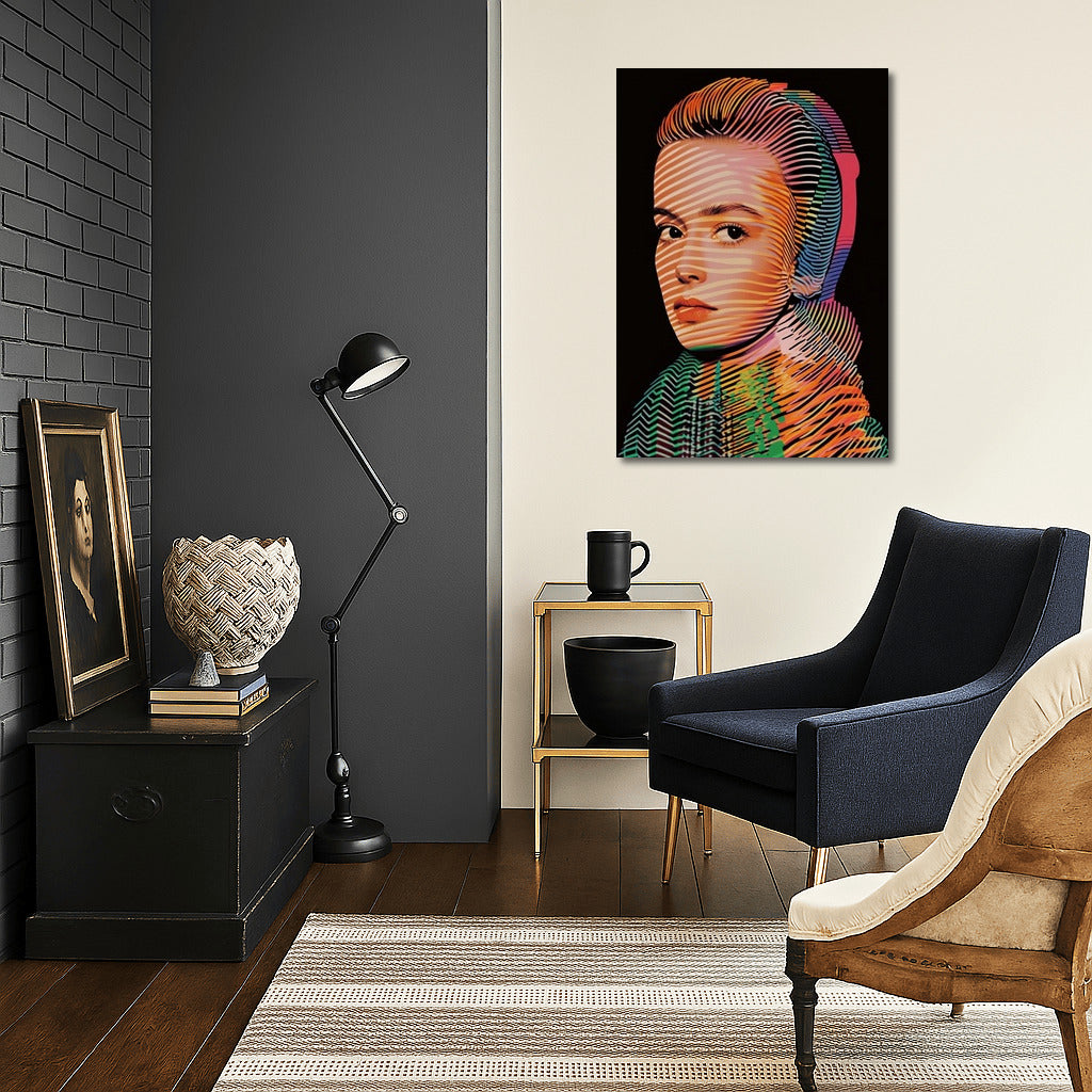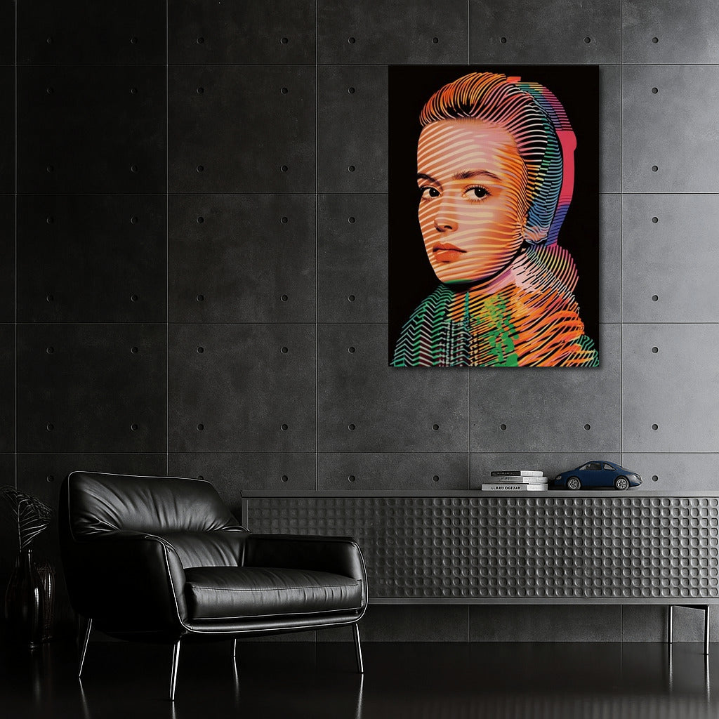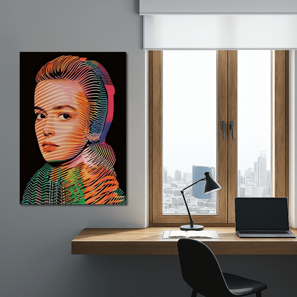 A vibrant poster with an abstract portrait where lines and colors create a unique wall art. A virtuoso play of shades! See more from the collection: Mixed Wall Art