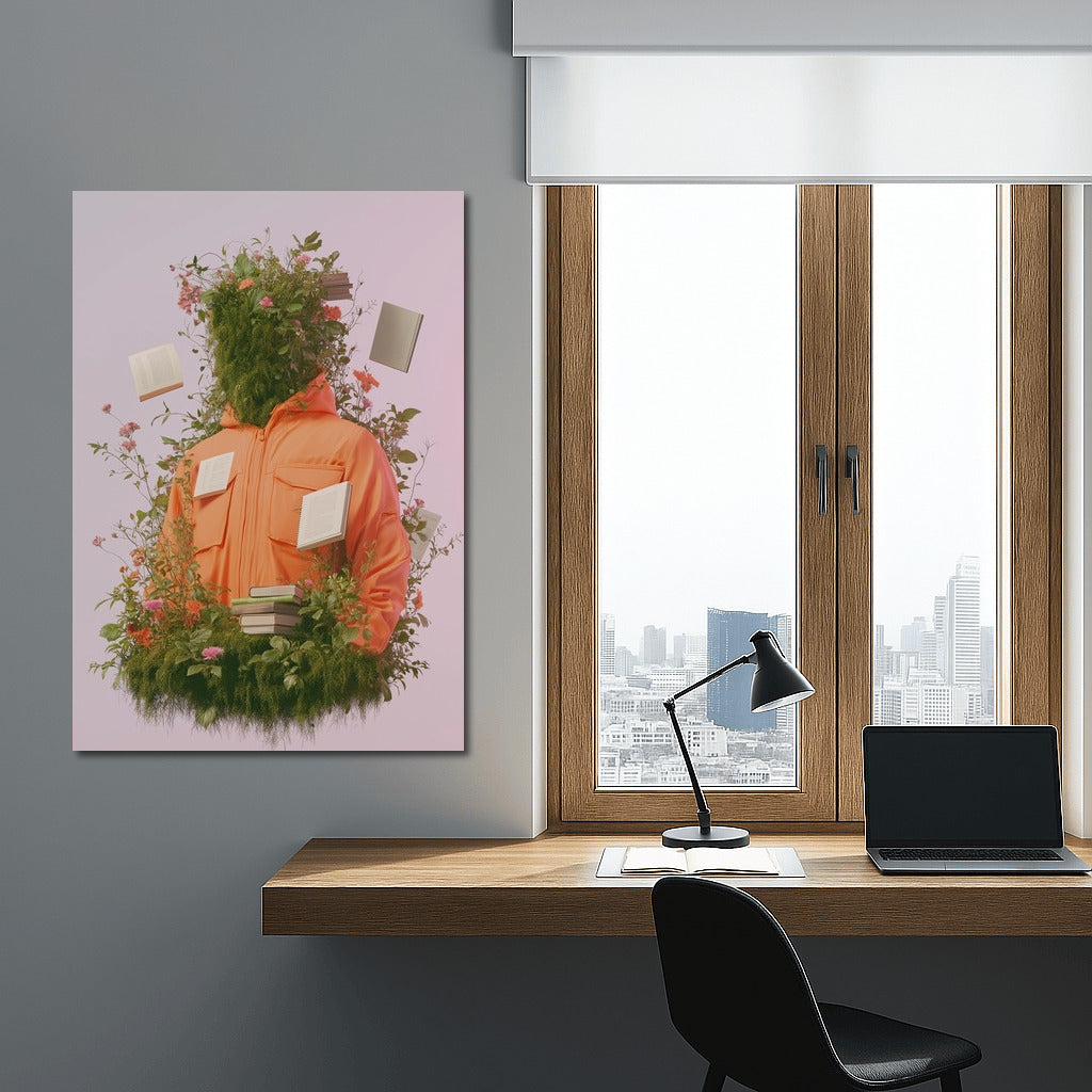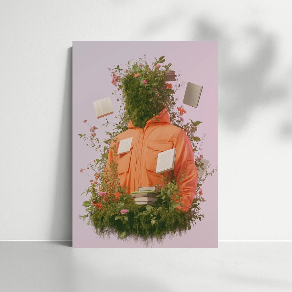 Dive into a fantasy world: a poster with a figure entwined with nature and books. The perfect accent for your wall art! See more from the collection: Mixed Wall Art