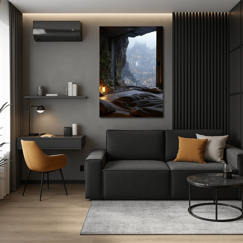 Urban grandeur through natural comfort: a poster where the metropolis meets cave silence. Perfect for your space. See more from the collection: Mixed Wall Art