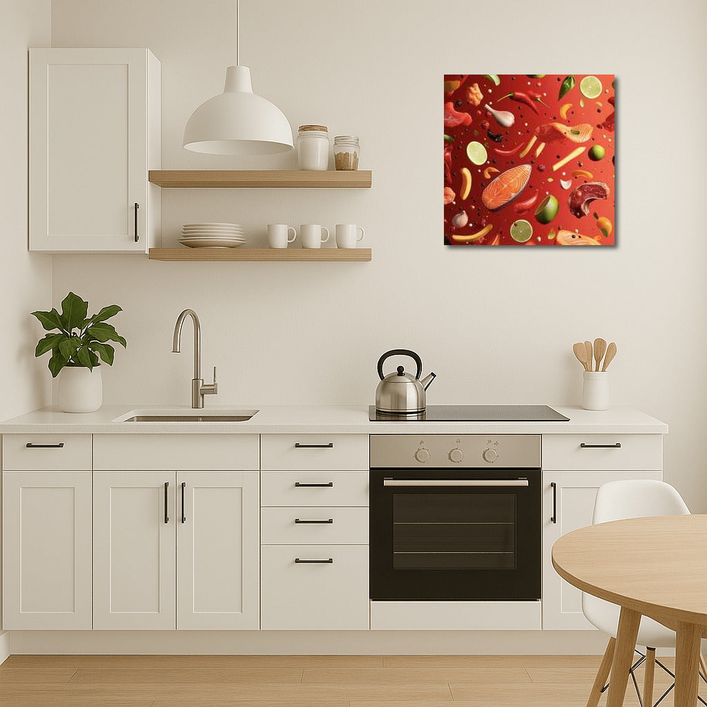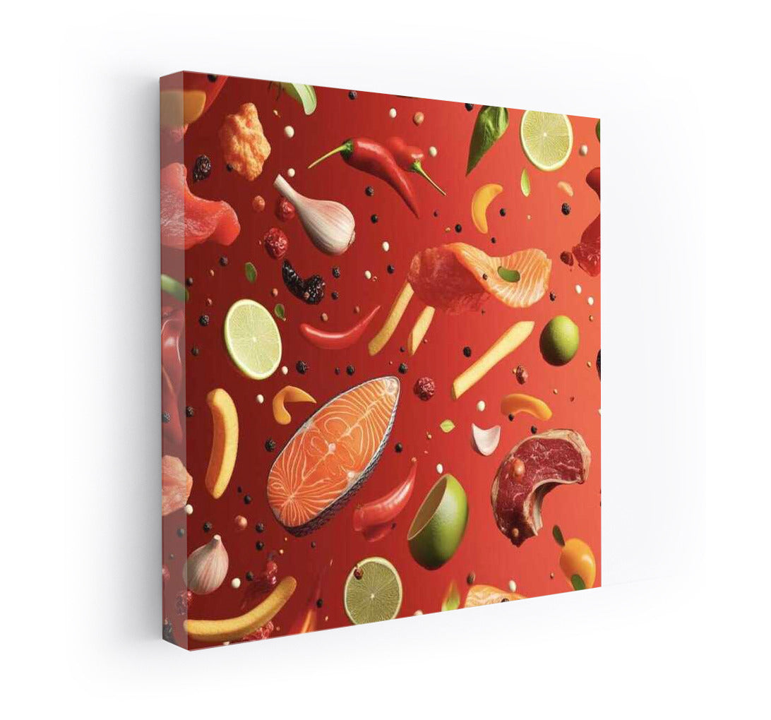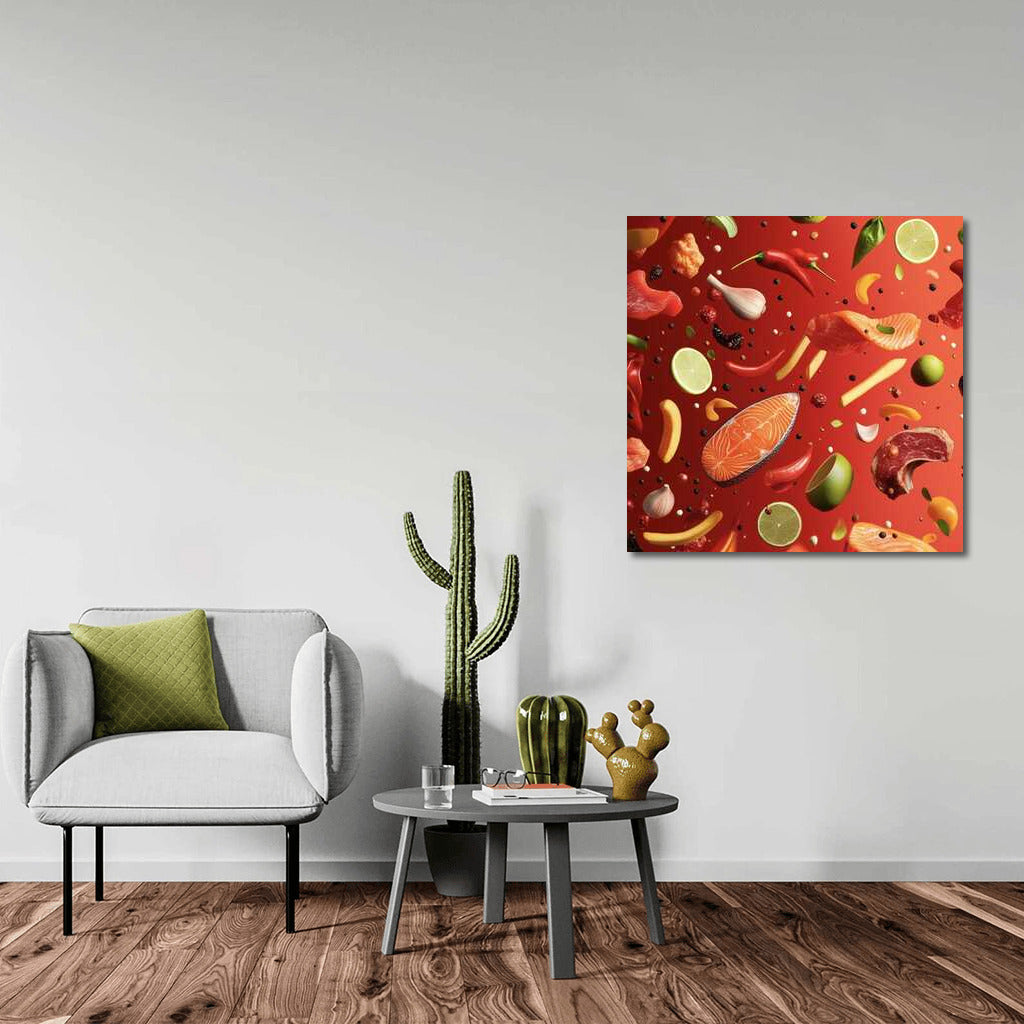 Explosion of flavors on the poster: juicy salmon, lime and spices create a culinary symphony. Perfect wall art for foodies! See more from the collection: Food Art