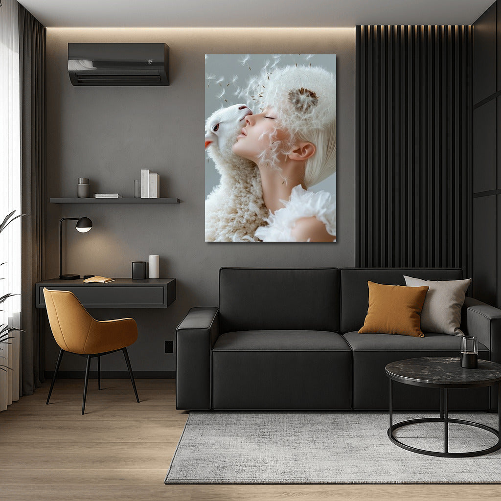 Immerse yourself in a world of tenderness and tranquility with this poster: the mysterious interaction of man and nature creates harmony. See more from the collection: Mixed Wall Art