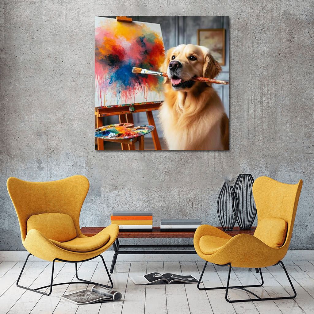 Creative chaos and tailed talent! This poster with the incredible 'dog artist' will inspire your wall art to be unique. See more from the collection: Animals Art