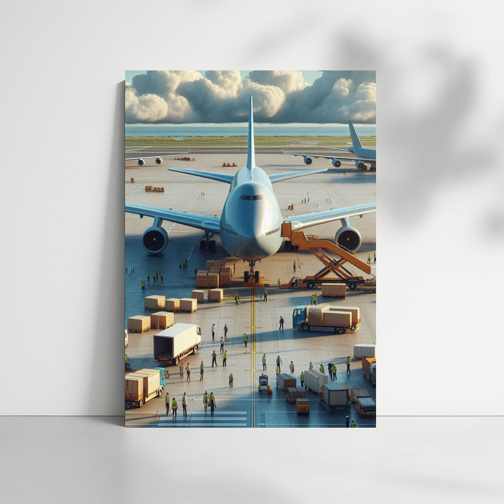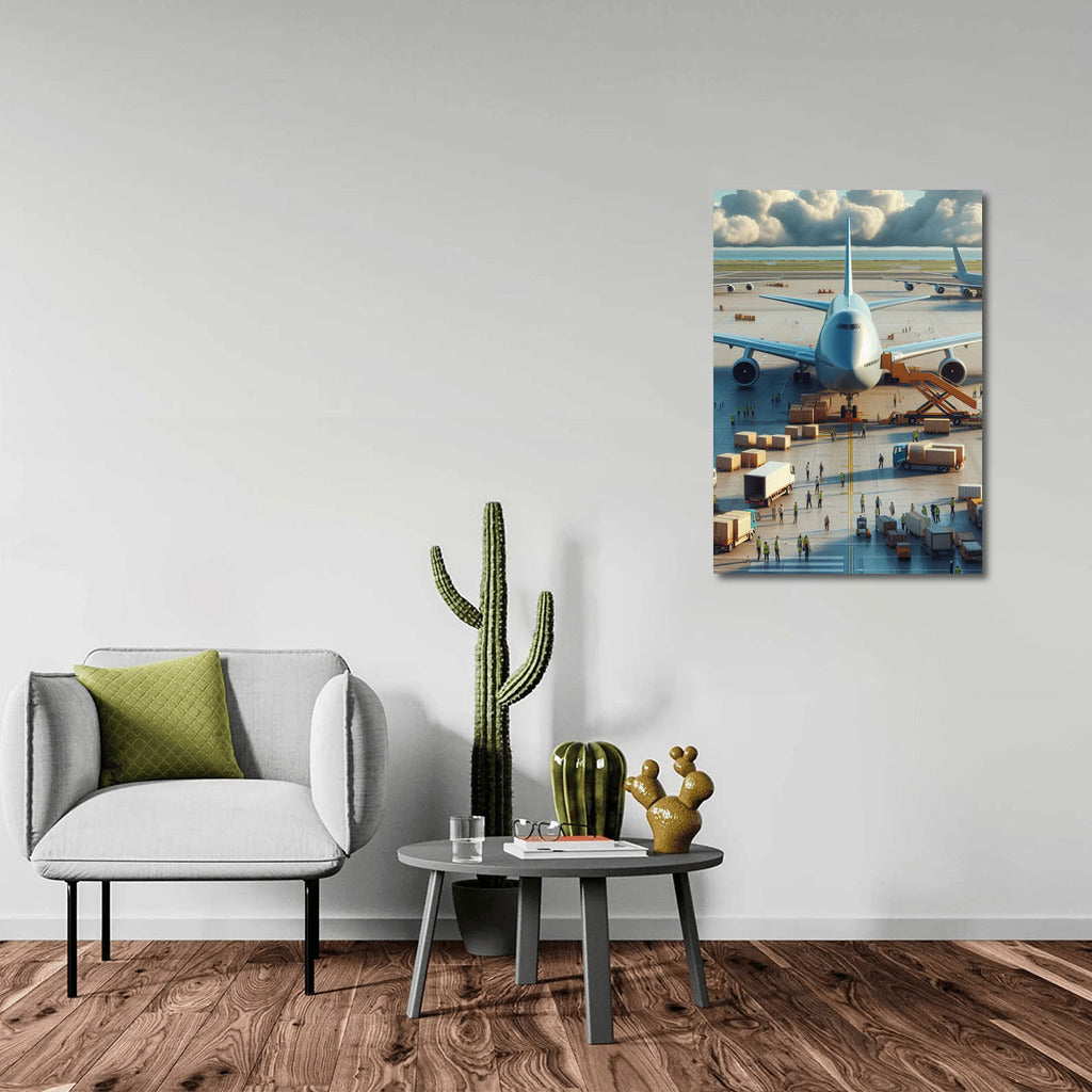 The mighty airliner comes to life in a painting. Transport Aircraft Airport wall art immerses you in the world of travel and logistics. See more from the collection: Airplanes Art