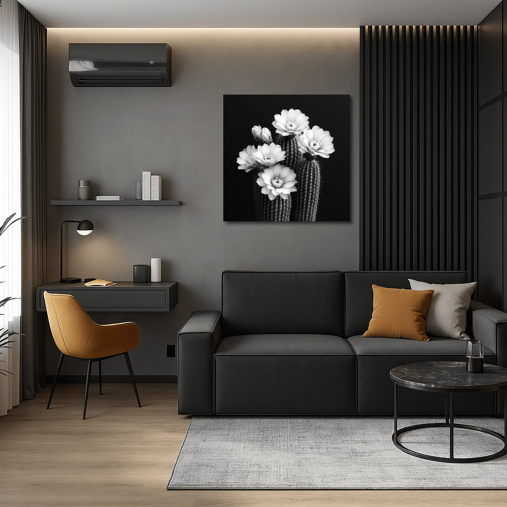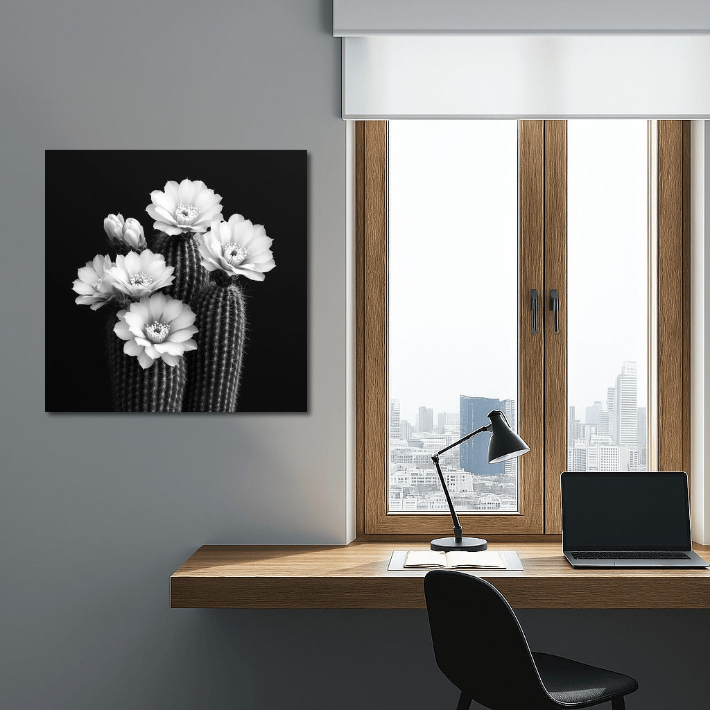 Black and White Poster: Elegant cactus flowers bloom on your wall art, adding sophistication and style to your interior. See more from the collection: Cactus Art