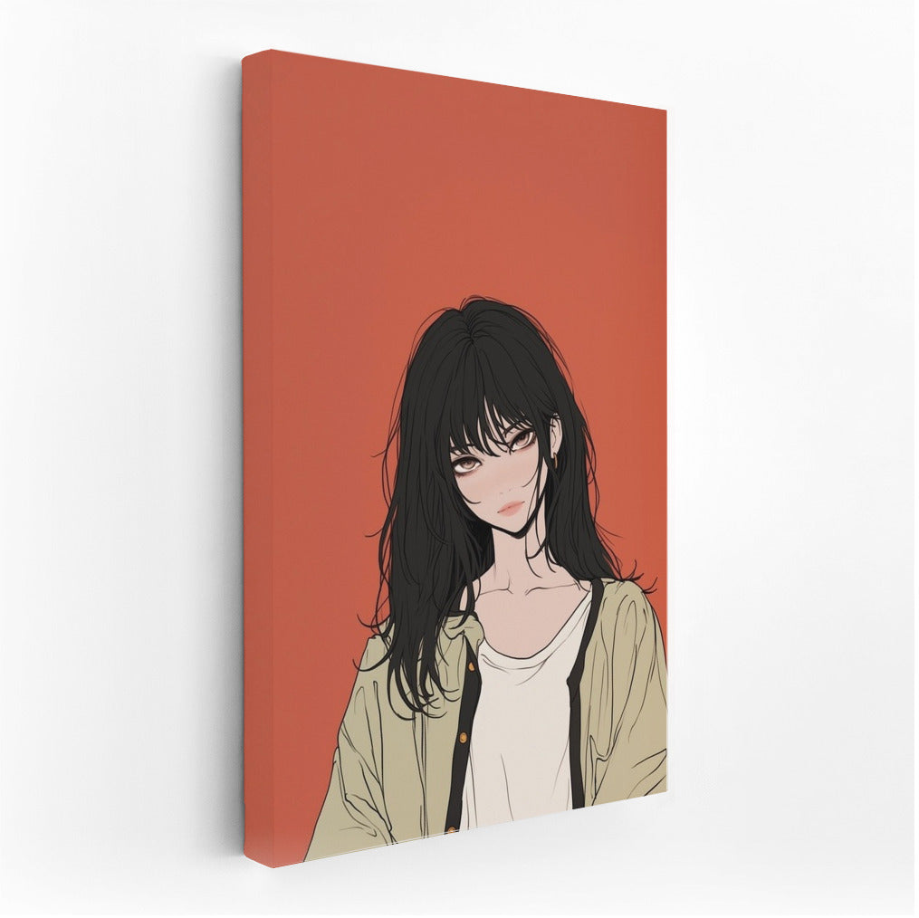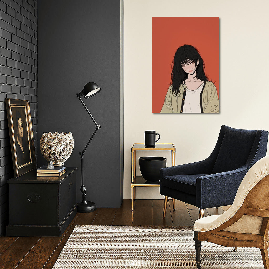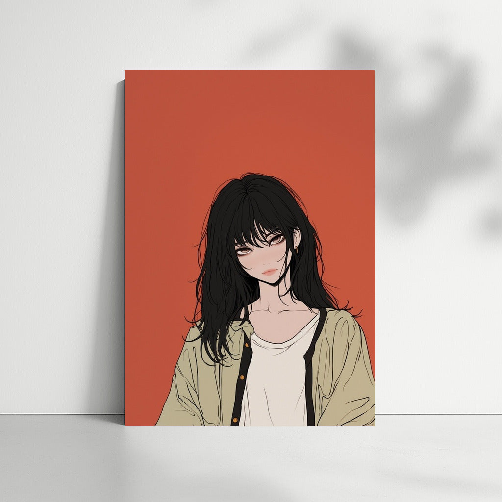Emotional wall art: a mysterious figure on a deep terracotta background. Abstract charm in every stroke! See more from the collection: Anime & Manga genres Art